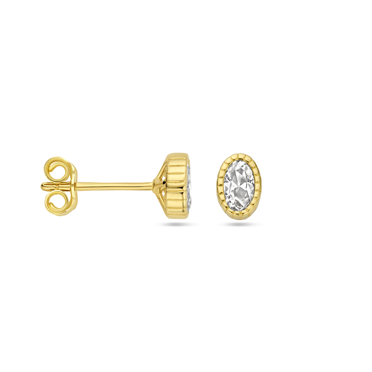 14k oorknoppen uitgevoerd met zirkonia. De oorknoppen hebben een afmeting van 6x4.5mm.