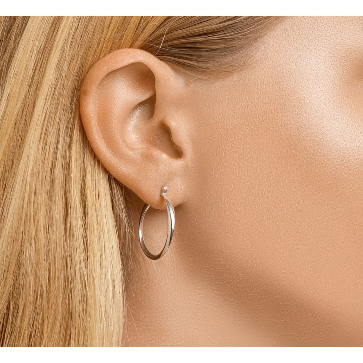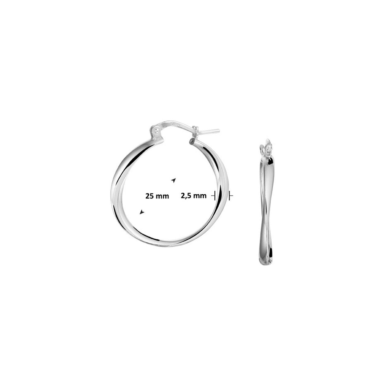 Stijlvolle gerhodineerd zilveren oorringen. De oorringen hebben een dikte van 2.5mm. Info: Gerhodineerd zilver is door de rhodiumlaag beter bestand tegen verkleuren en krassen.