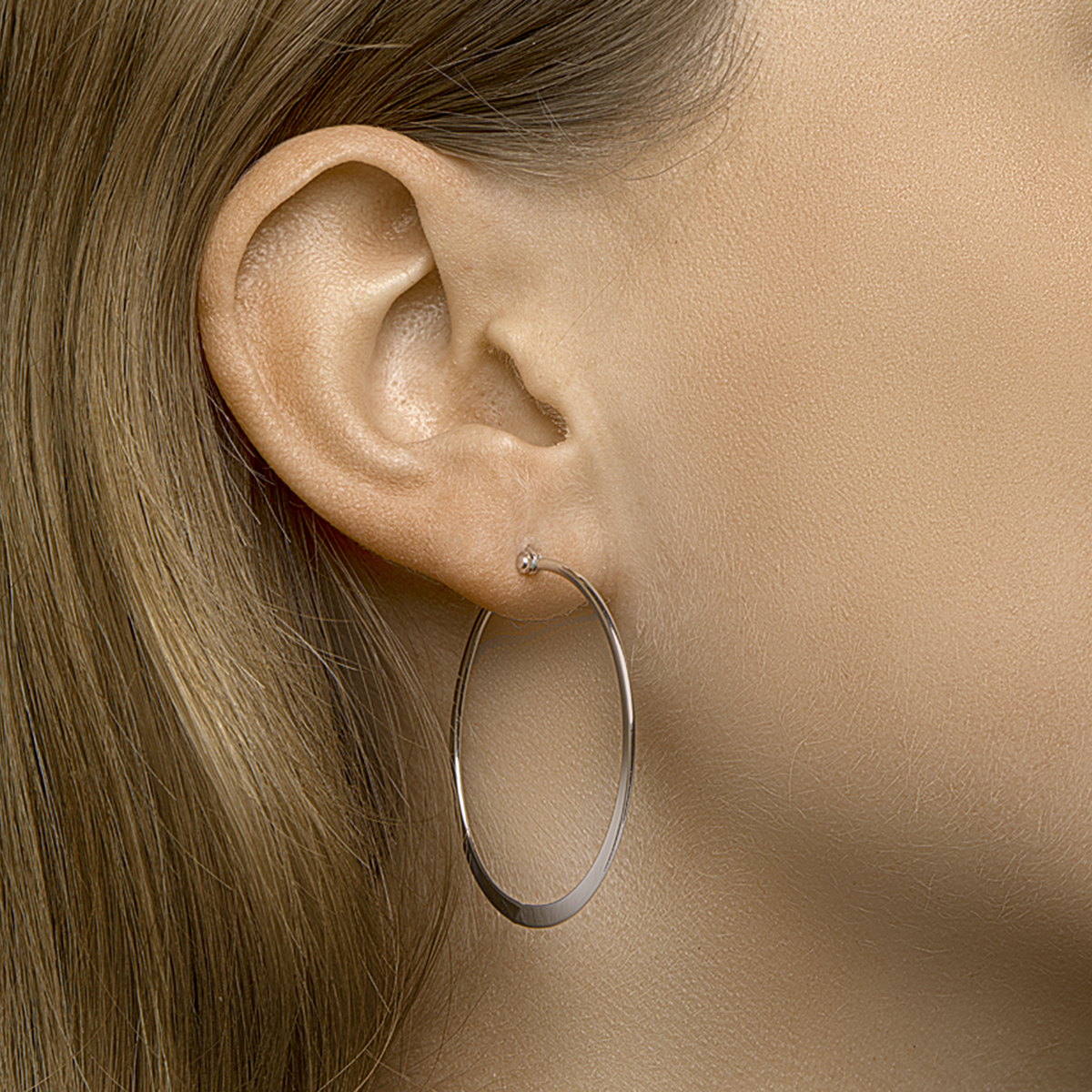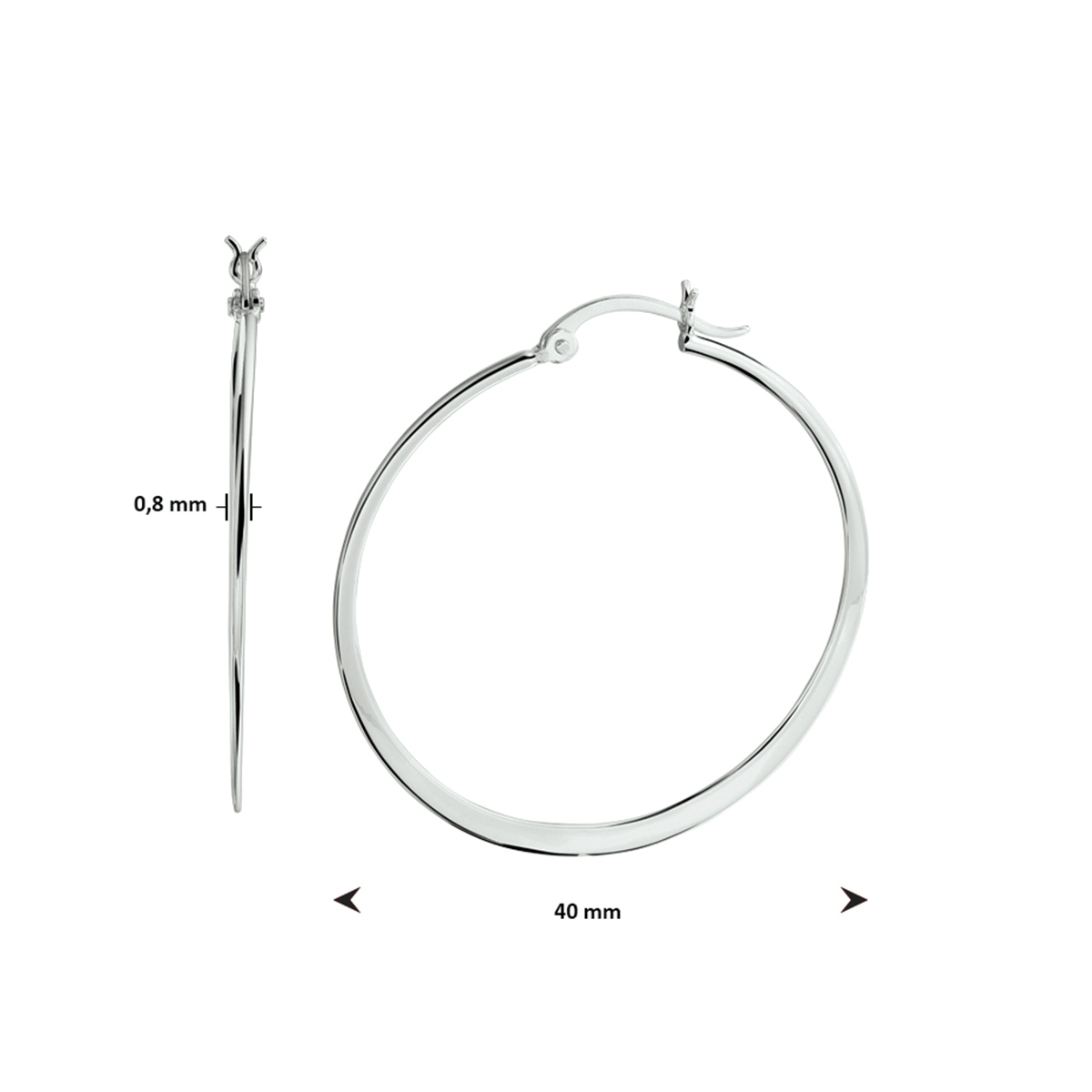 Gerhodineerd 925 zilveren oorringen uitgevoerd met een stevige scharnier sluiting. De oorringen hebben een afmeting van 40x0.8m.