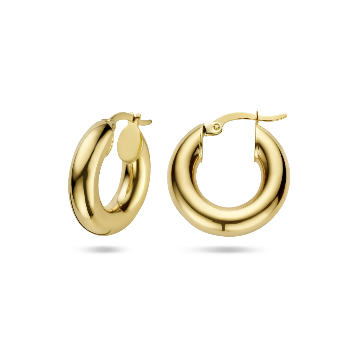 14k Geelgouden oorringen met een ronde buis van 5mm. De oorringen hebben een diameter van 19.5mm.