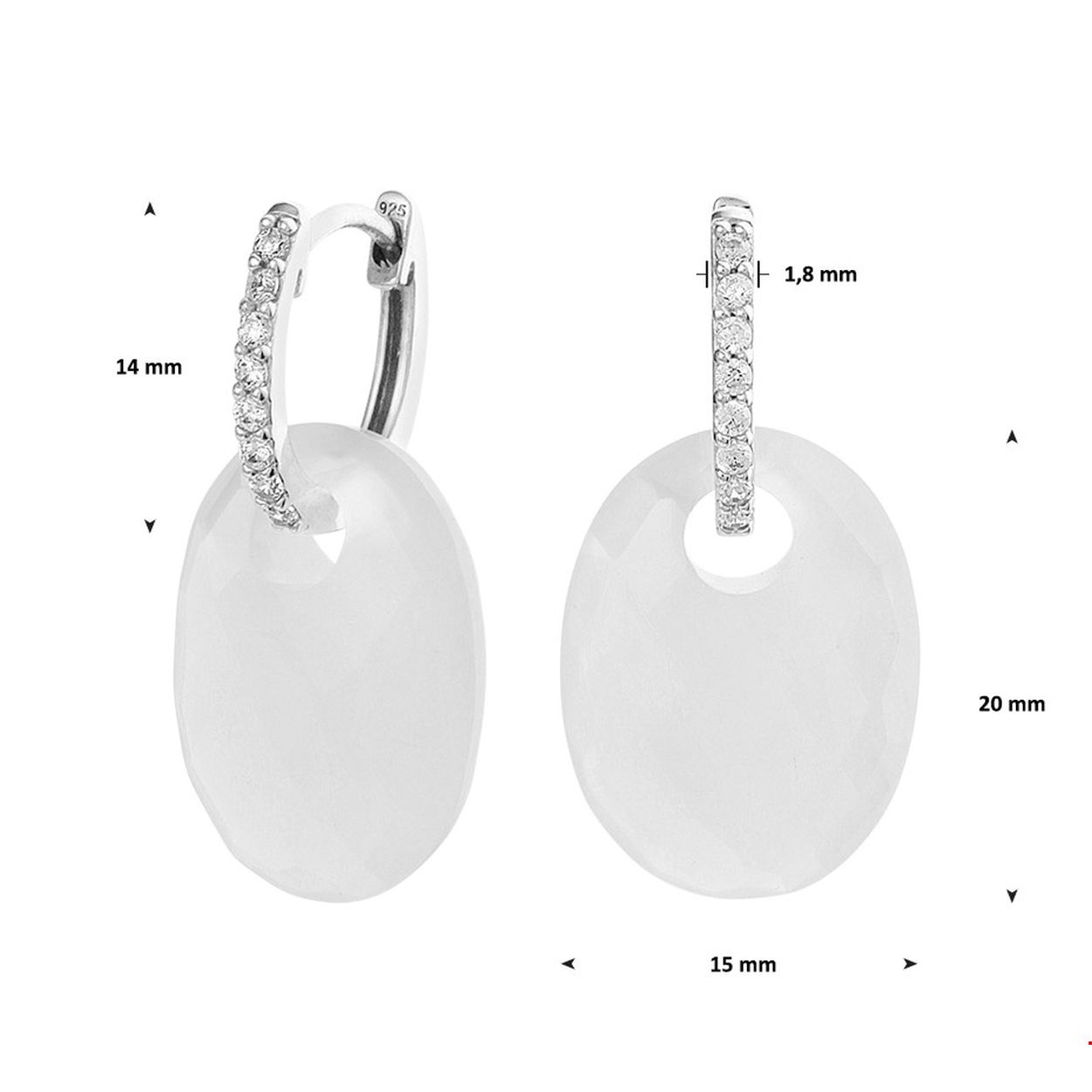 Gerhodineerd zilveren oorringen uitgevoerd met een rij van heldere zirkonia en een schitterende agaat van 20x15mm. Tip: Leuk om kado te geven! Zie je ze al stralen?