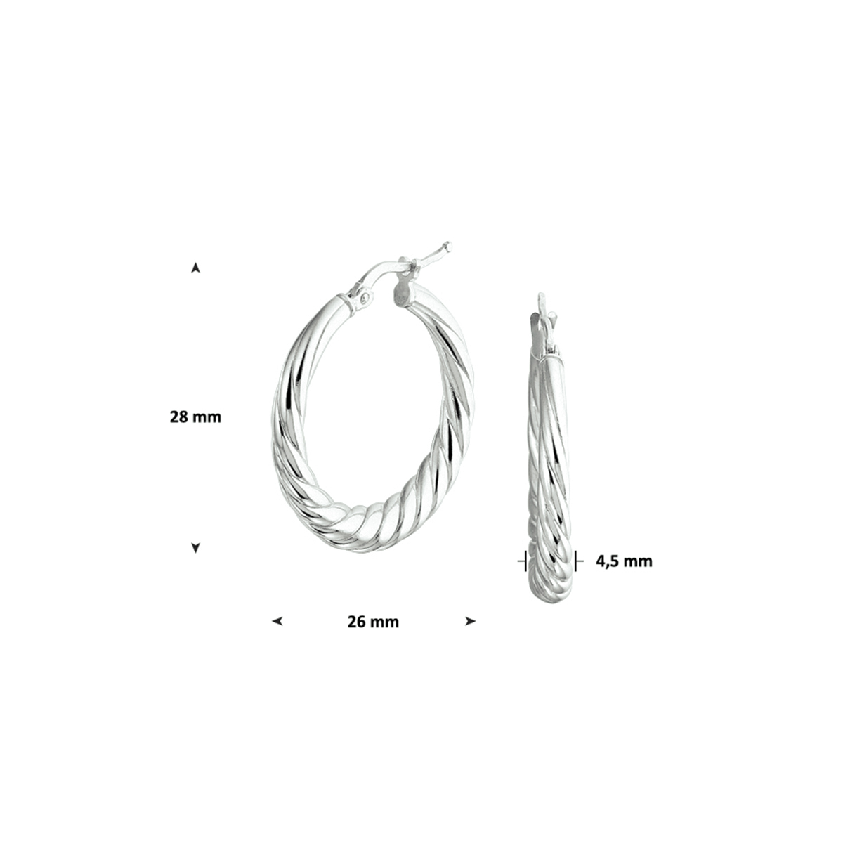 Klassieke gerhodineerd zilveren creolen met een afmeting van 28x4.5mm uitgevoerd met een stevige scharnier sluiting. Door het stijlvolle en verfijnde ontwerp kunnen deze creolen perfect worden gedragen met andere sieraden. Info: Gerhodineerd zilver is door de rhodiumlaag beter bestand tegen verkleuren en krassen.