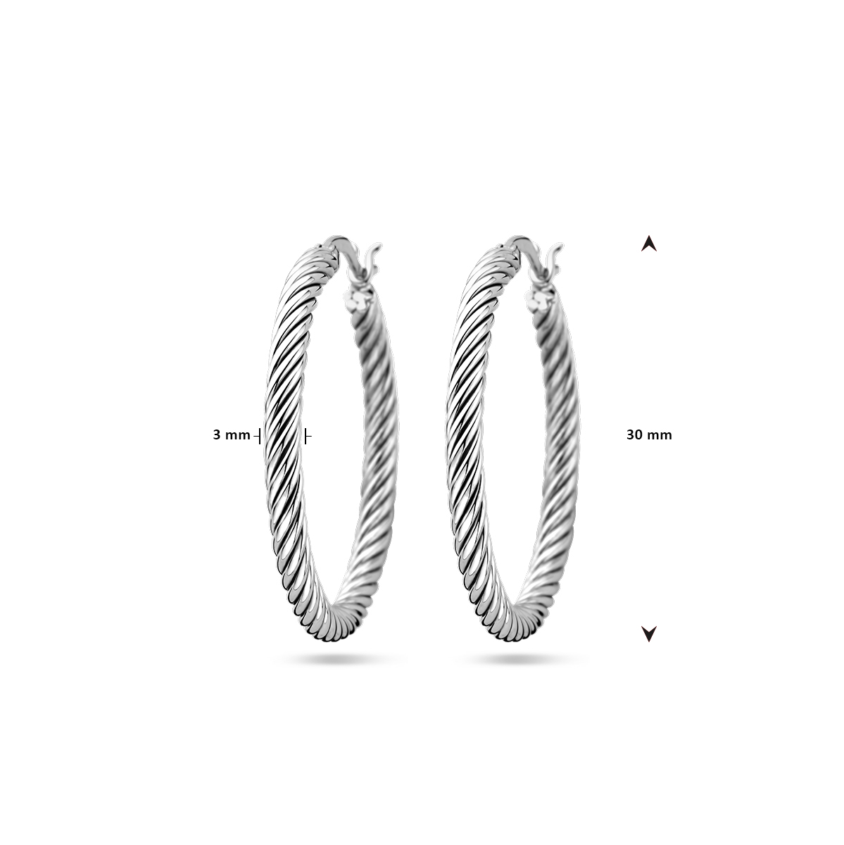 Gerhodineerd 925 zilveren oorringen met een gedraaide buis van 3mm.