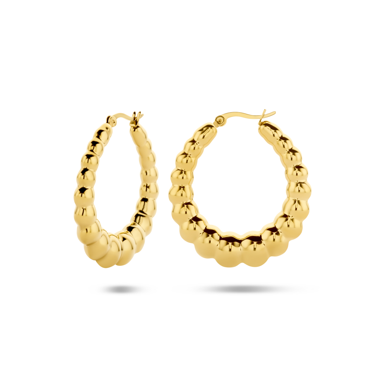 Stalen oorringen met een afmeting van 41.5x7mm en een geelgouden ion plating.