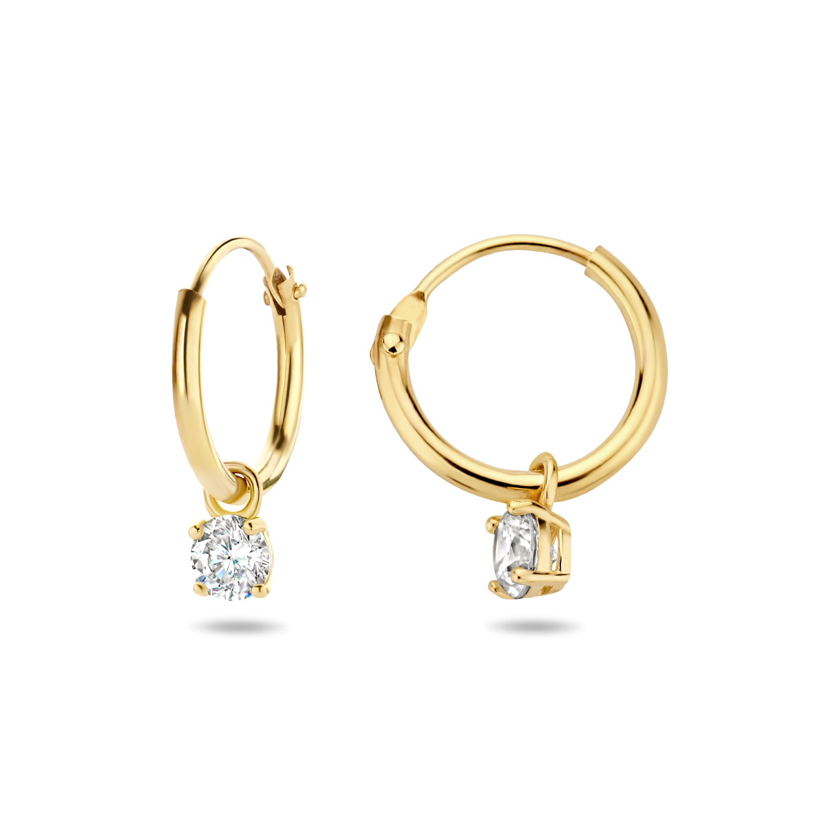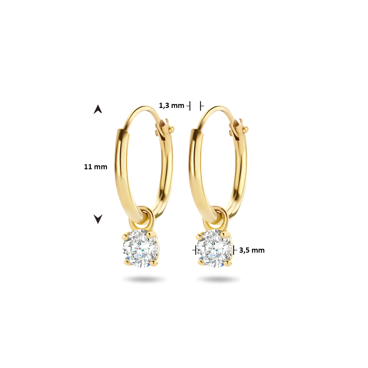 Beschrijving: Trendy geelgouden creolen met een schitterende zirkonia in een chaton. De creolen hebben een afmeting van 11x1.3mm met een hanger van 5.5x3.5mm. Tip: Leuk om kado te geven! De creolen hebben een subtiele uitstraling en kunnen dagelijks gedragen worden.