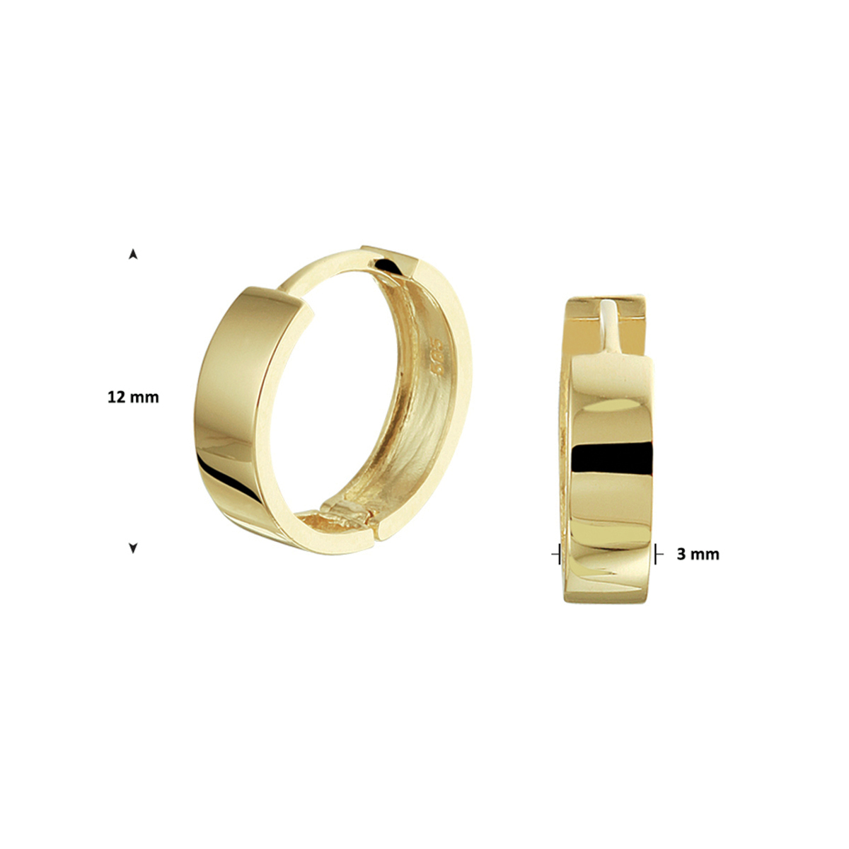 Beschrijving: Klassieke geelgouden klapcreolen met een afmeting van 12x3mm uitgevoerd met een stevige scharnier sluiting. Door het simplistische design zijn deze klapcreolen perfect te combineren met andere sieraden uit onze collectie of vanuit je eigen sieraden stash.