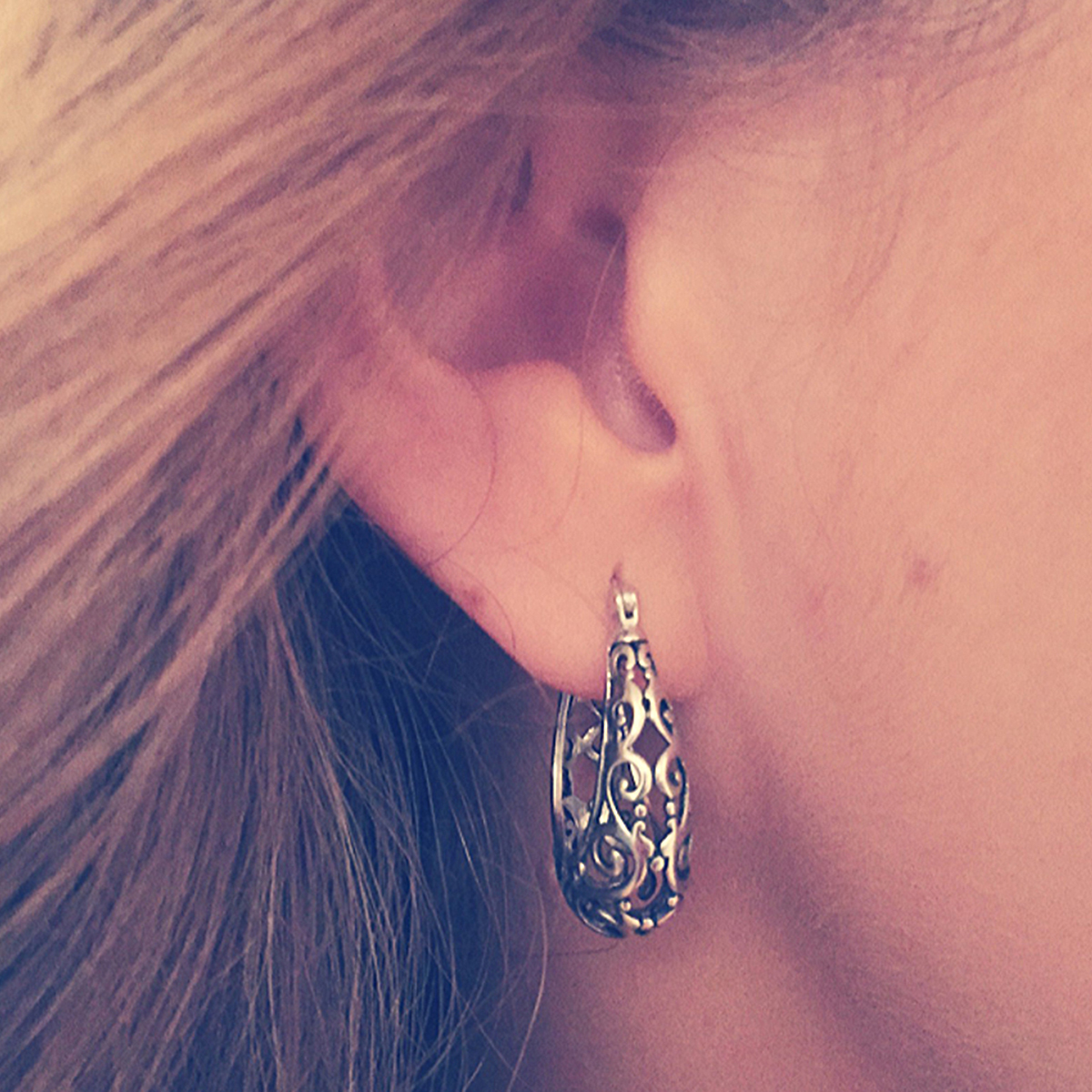 Beschrijving: Geoxideerde zilveren sierlijk opengewerkte filigrain creolen met stevige hefboomsluiting. De creolen hebben een hoogte van 21mm en zijn 7mm breed. De geoxideerde afwerking zorgt dat de kern donkerder wordt en de sierlijke lijnen beter zichtbaar zijn. Perfect voor een chique avond waar je wilt stralen met chique sieraden om de show te stelen.