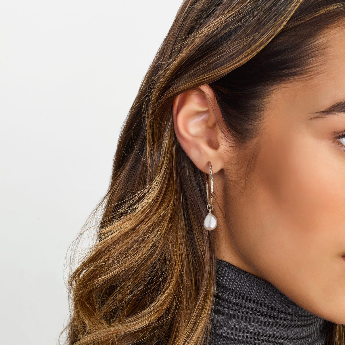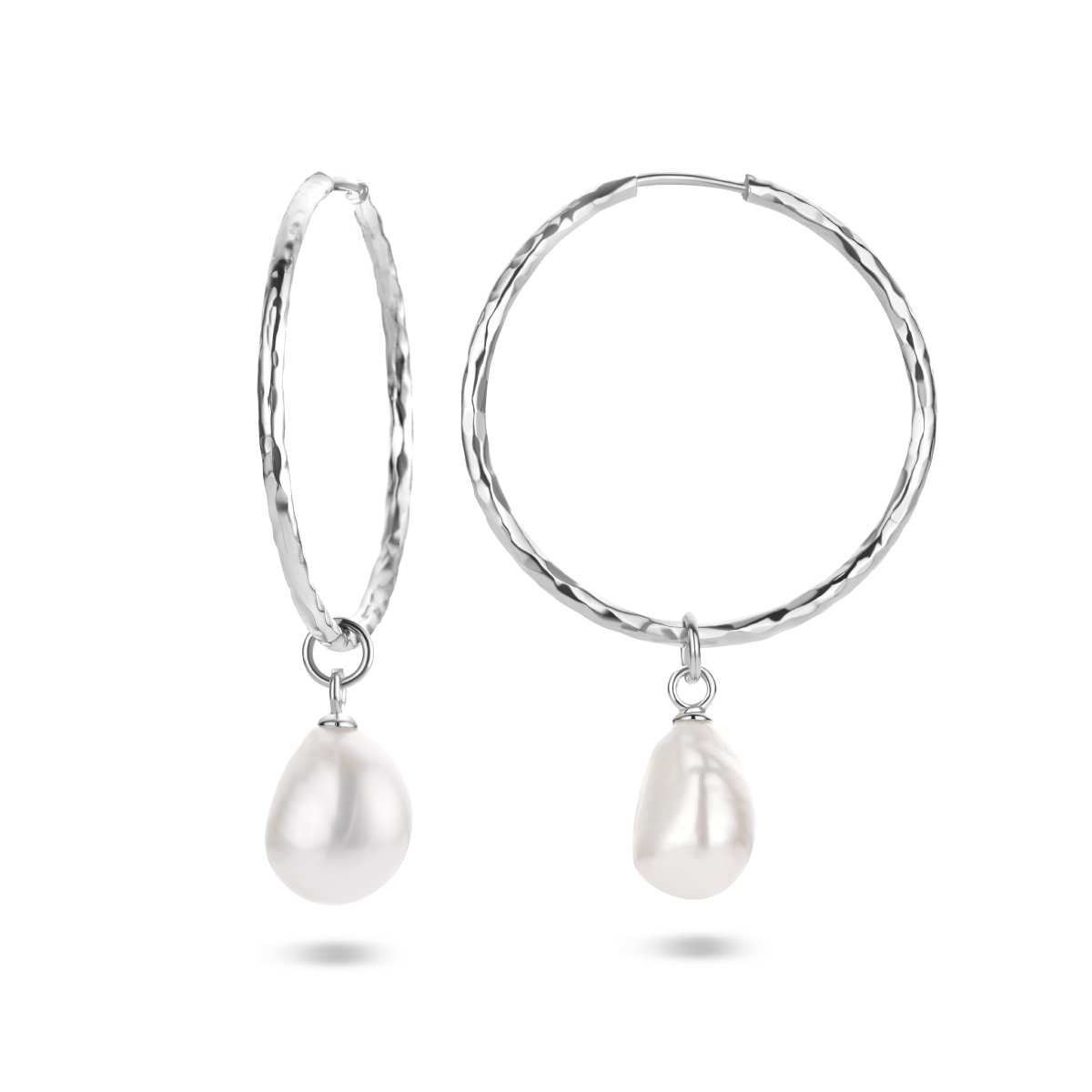 Gerhodineerd 925 zilveren oorringen uitgevoerd met een zoetwaterparel. De oorringen hebben een totale hoogte van 53mm.