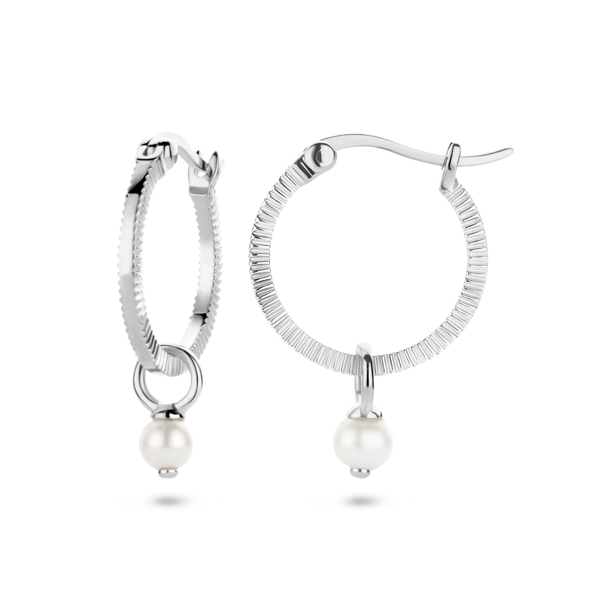 Gerhodineerd 925 zilveren oorringen uitgevoerd met schitterende parel van 4.5x3.5.