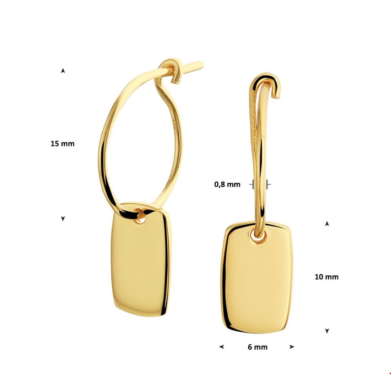 Beschrijving: Geelgoud op zilveren oorrringen met een afmeting van 15x0.8mm uitgevoerd met een poli afgewerkte rechthoek van 10x6mm.