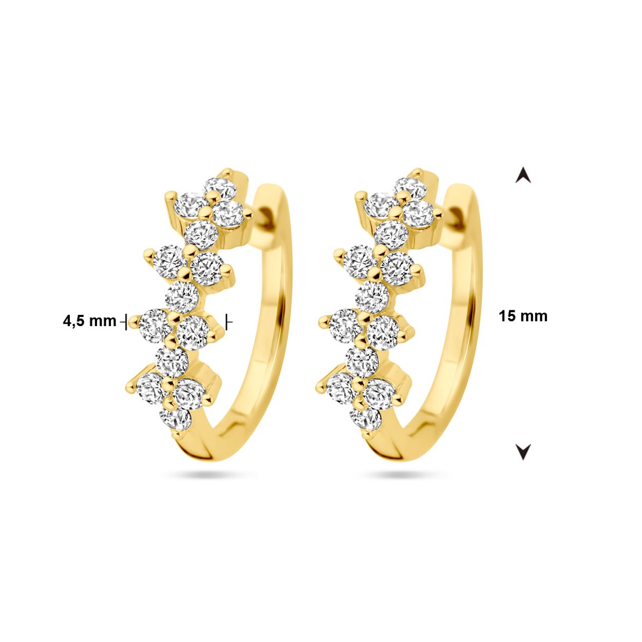 21.03666 | Geelgoud op 925 zilveren oorringen | zirkonia | afmeting van 15x4,5mm