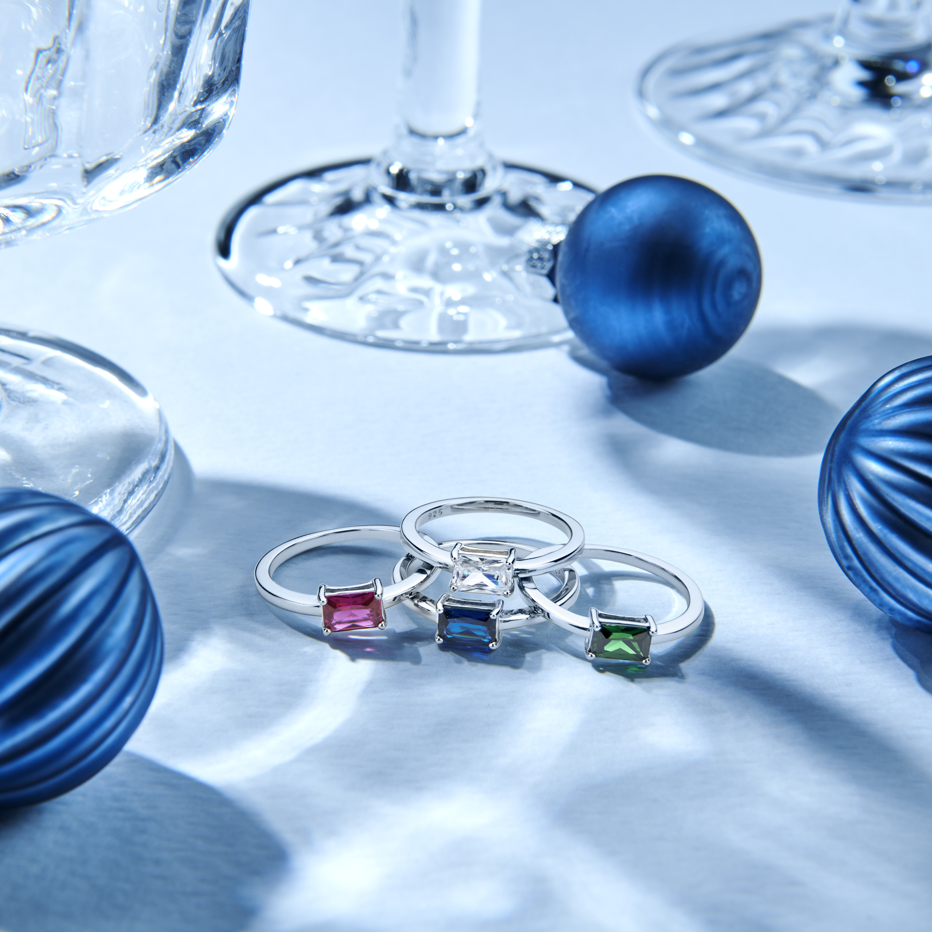 Gerhodineerd 925 zilveren ring uitgevoerd met blauw zirkonia. De ring heeft een breedte van 4.5mm.
