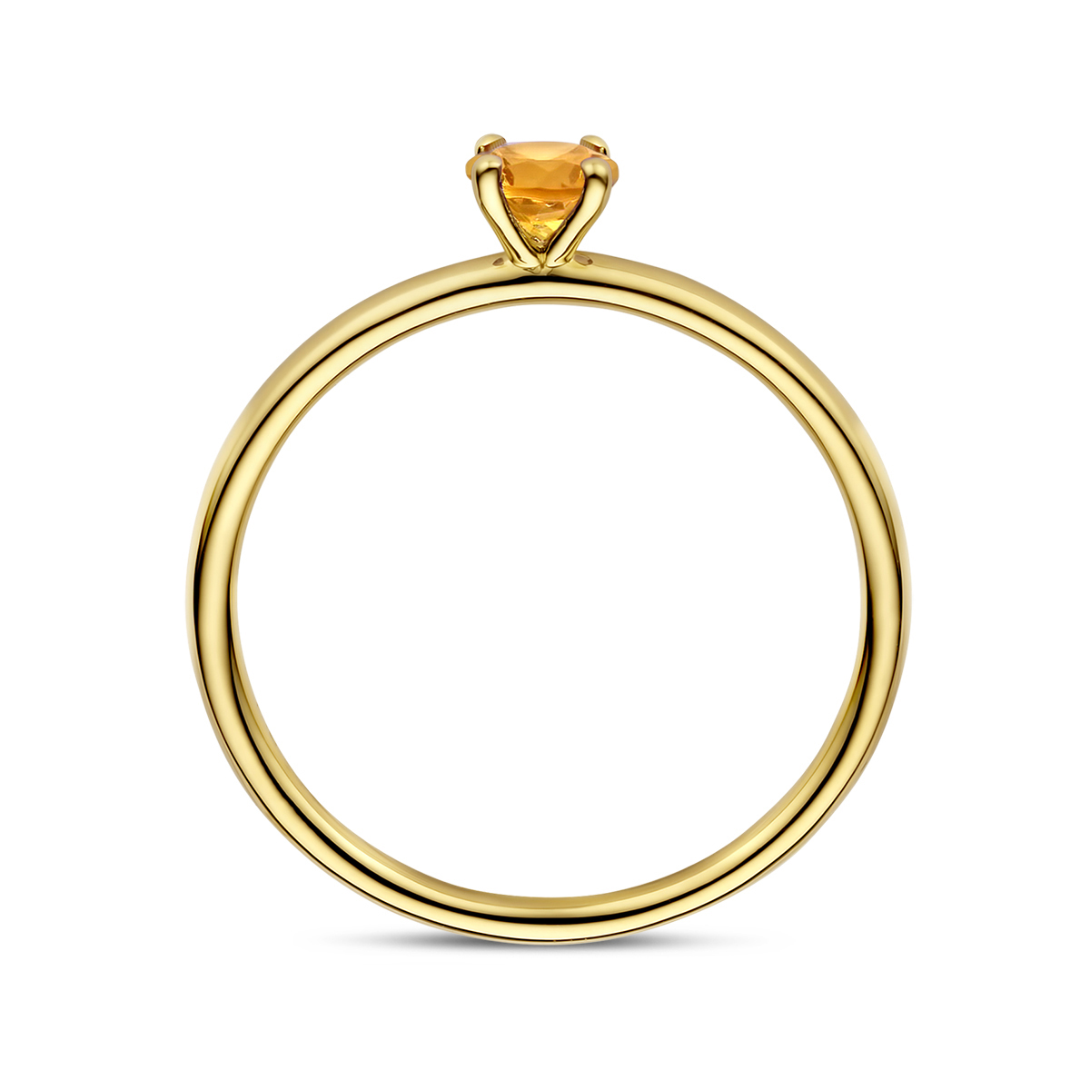14k Geelgouden ring uitgevoerd met citrien. De ring heeft een breedte van 3.5mm.