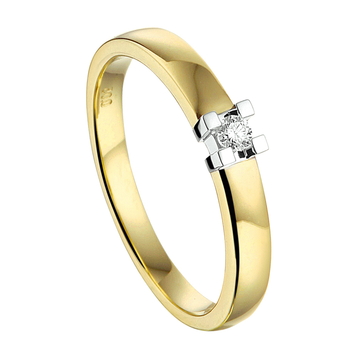 Beschrijving: Bicolor wit- en geelgouden ring met diamant.