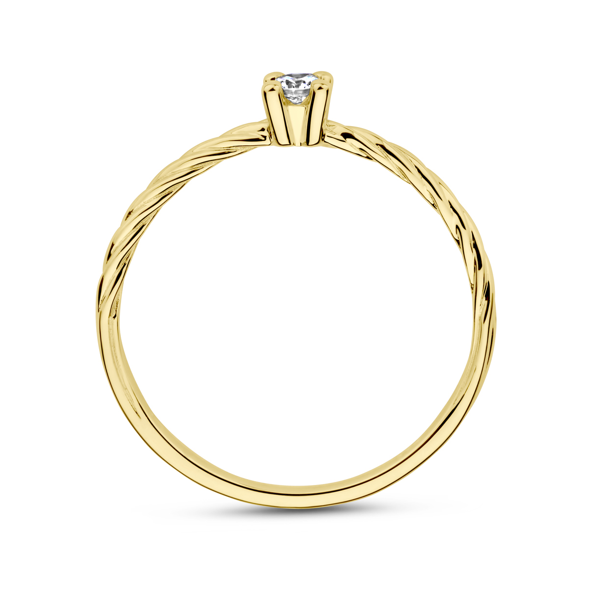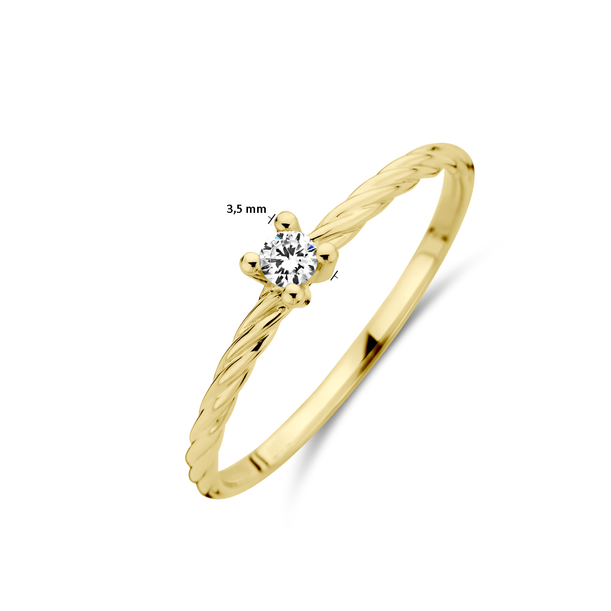 14k Geelgouden ring uitgevoerd met diamant. De ring heeft een breedte van 3.5mm.
