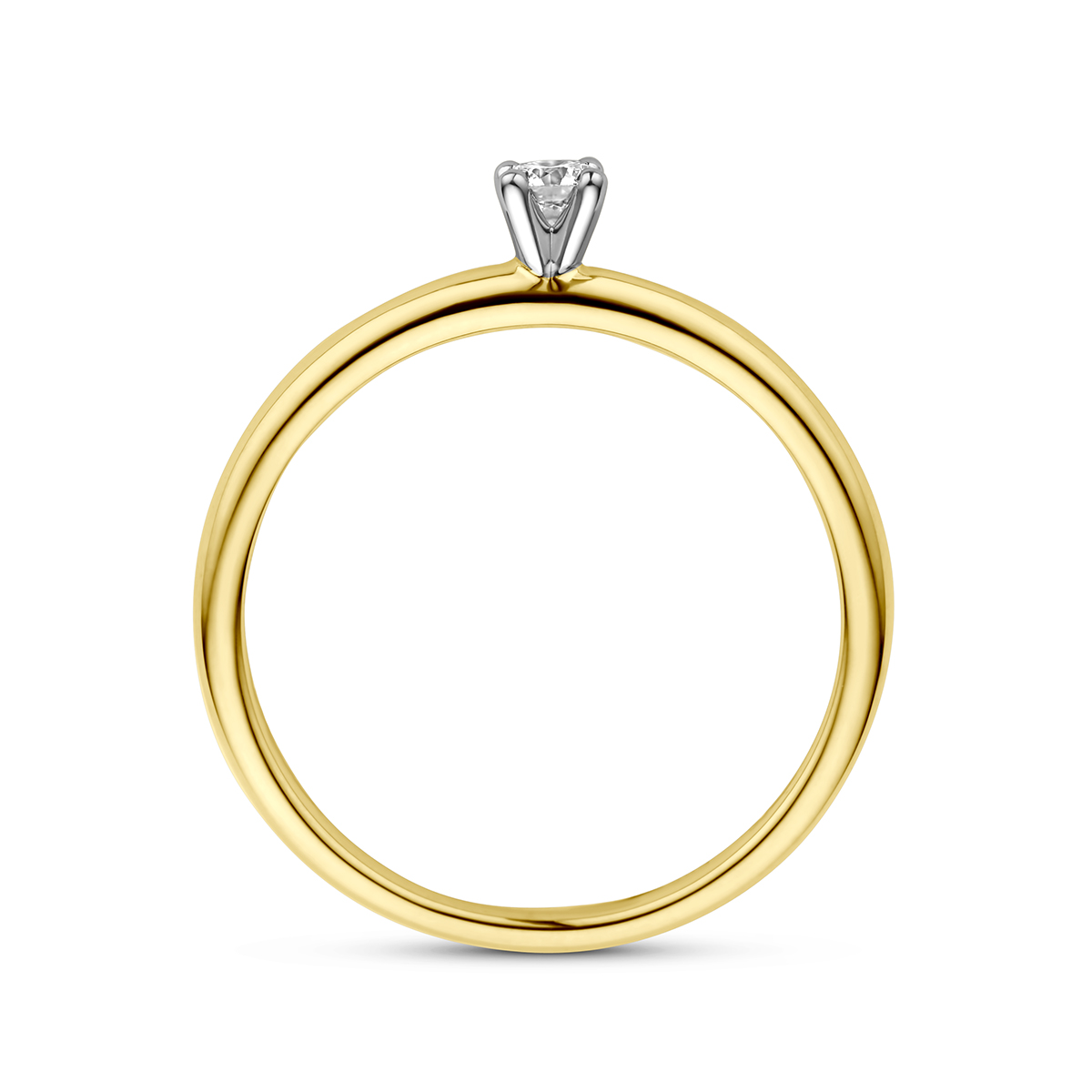 Stijlvolle bicolor geel- en witgouden ring met een schitterende briljant geslepen diamant.