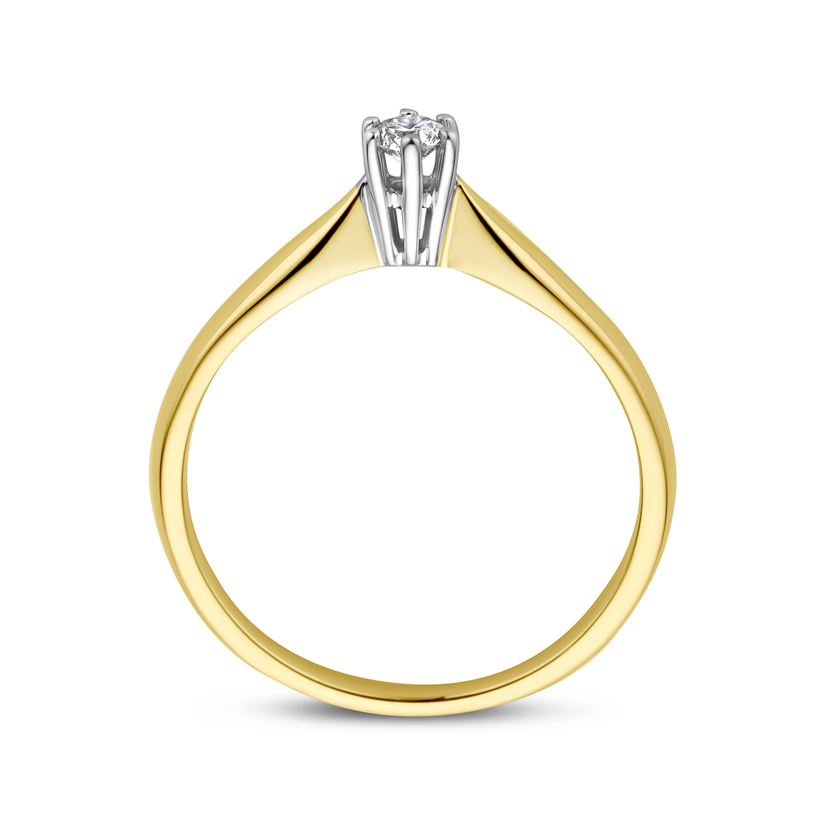 De ring is gemaakt van bicolor goud en is goudkleurig. Het is een sieraad voor dames.