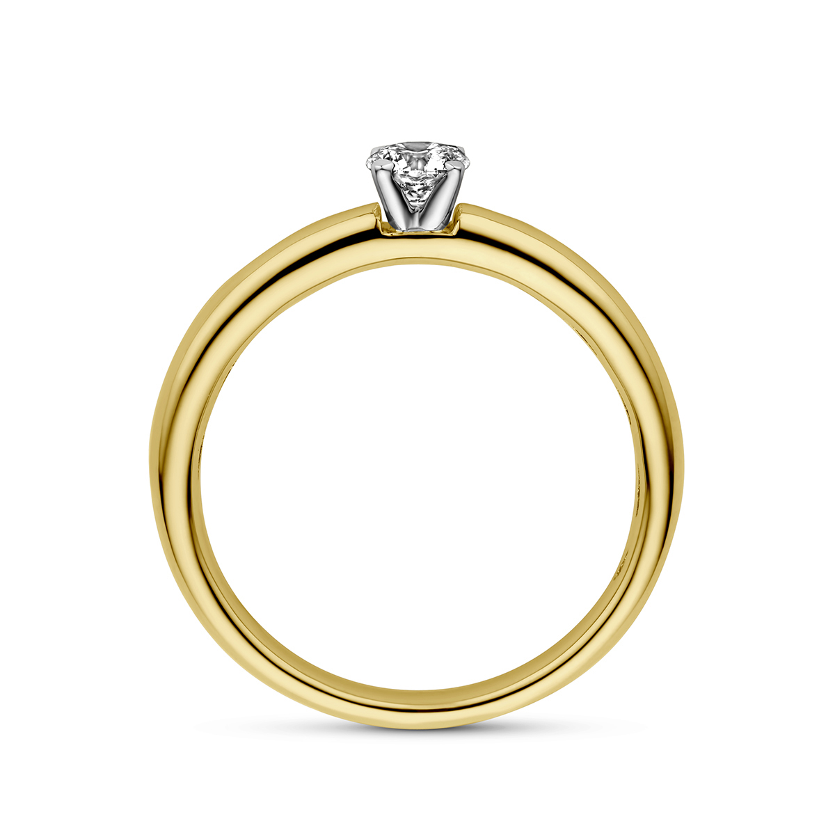 Beschrijving: Bicolor wit- en geelgouden ring met diamant.