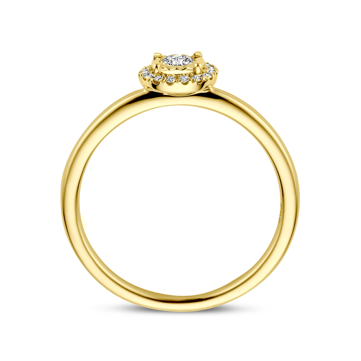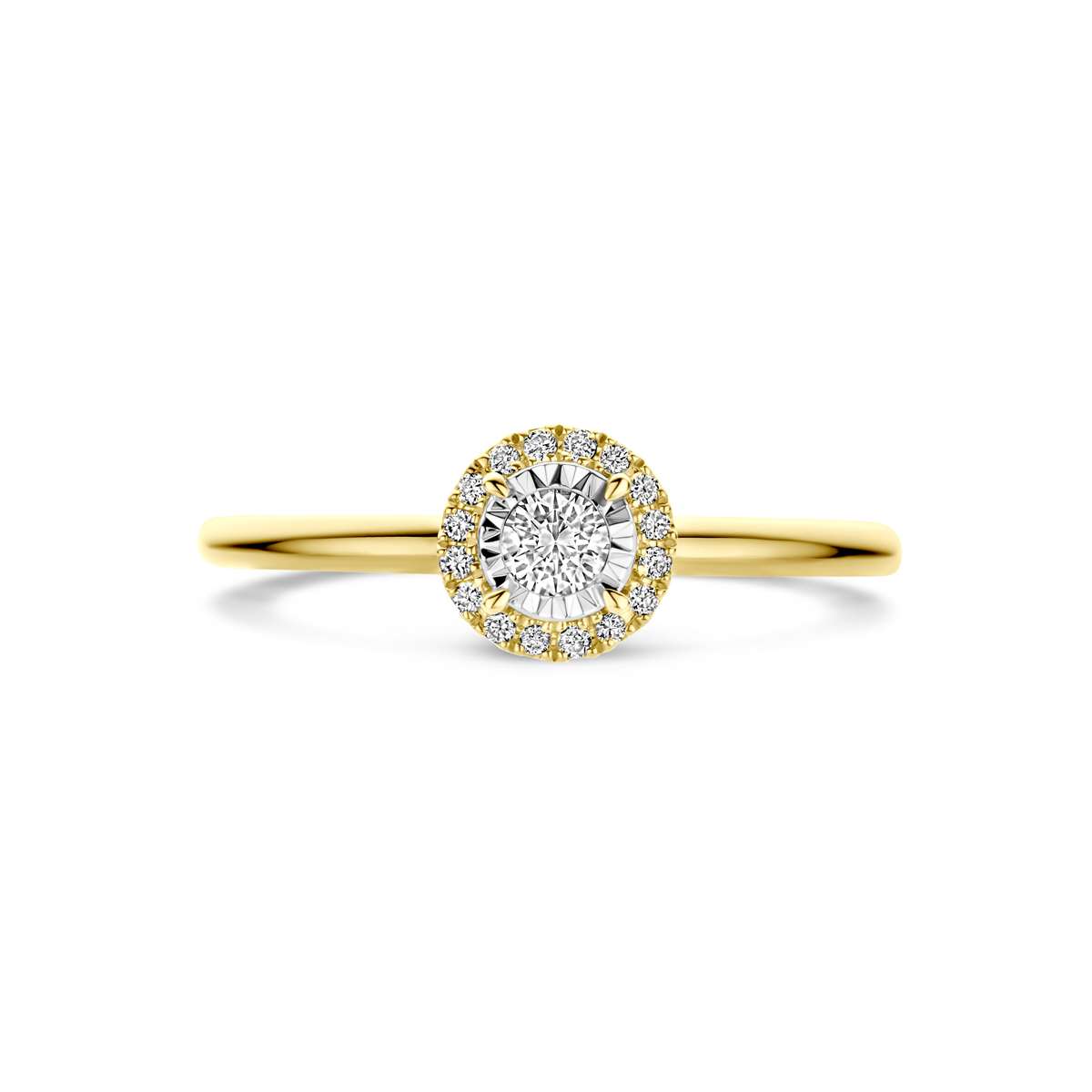 14k Bicolor geel- en witgouden ring uitgevoerd met diamant. De ring heeft een breedte van 7mm. Het totale diamantgewicht is 0.15ct.