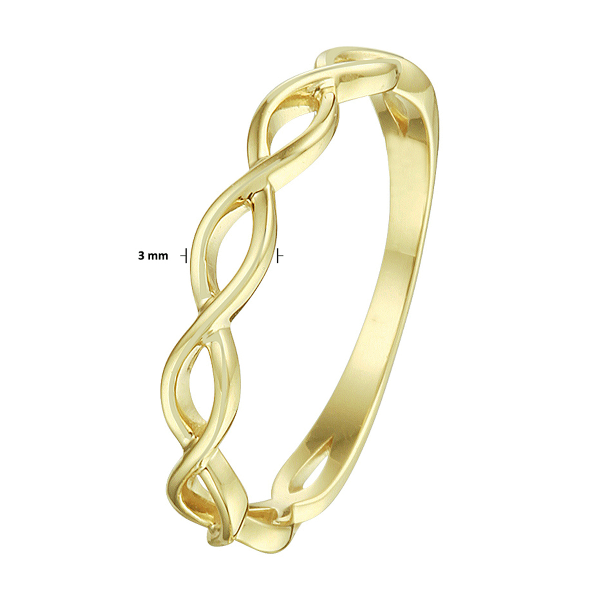 Stijlvolle geelgouden ring met een breedte van 3mm uitgevoerd met een schakelmotief. Minimalistisch design voor een exclusieve uitstraling.