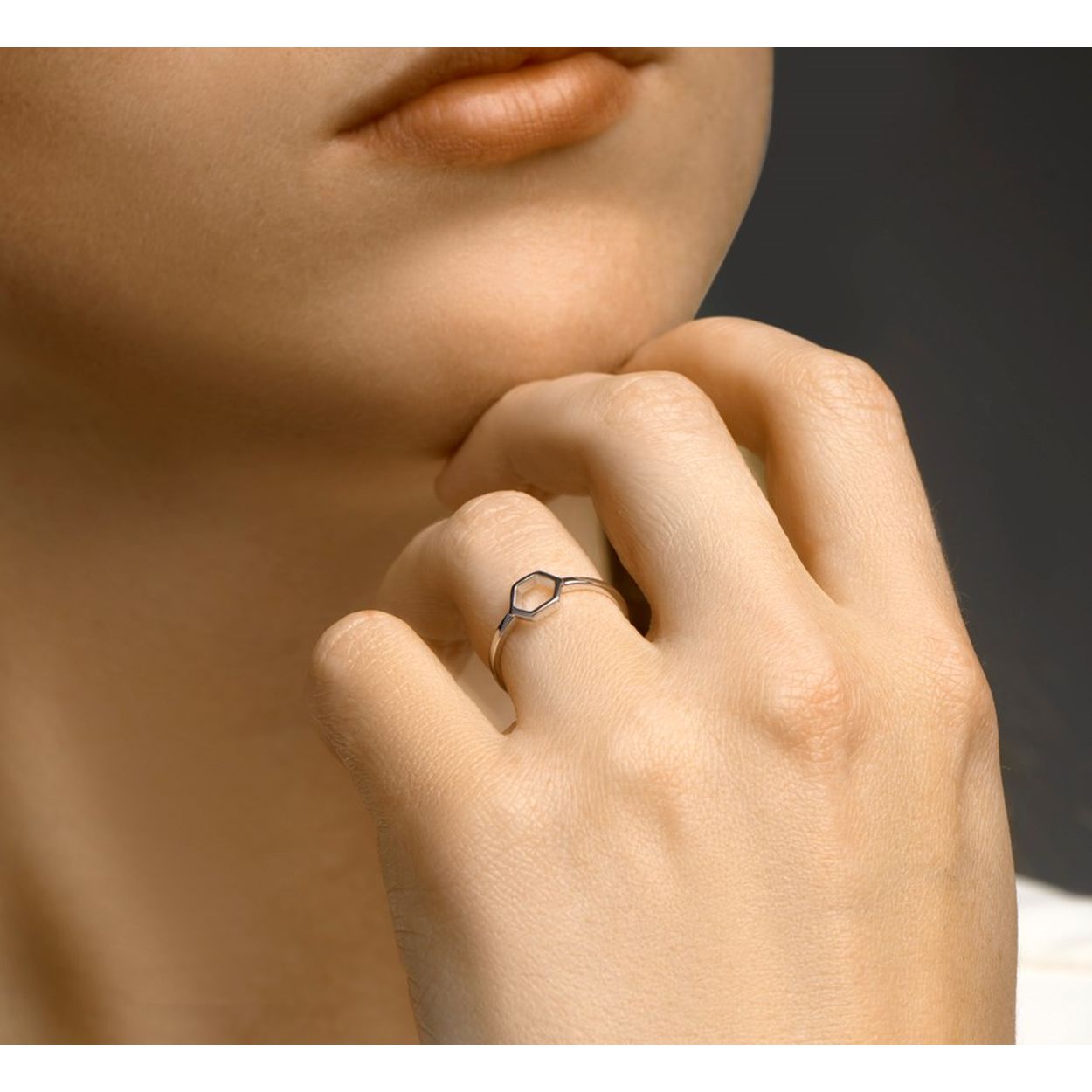 Gerhodineerd 925 zilveren ring in de vorm van een zeshoek. De ring heeft een breedte van 7mm.