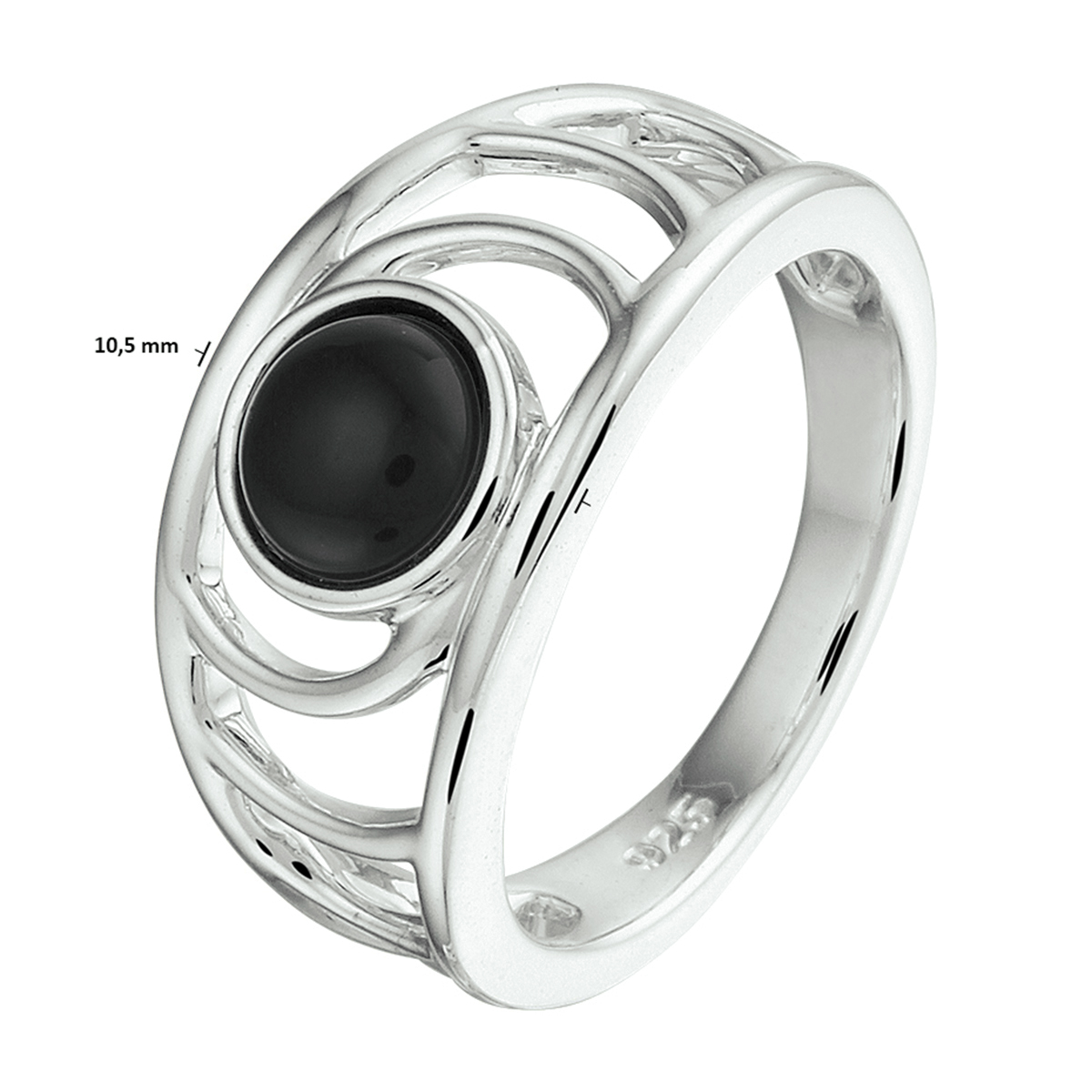 Gerhodineerd 925 zilveren ring uitgevoerd met een schitterende onyx. De ring heeft een breedte van 10.5mm.