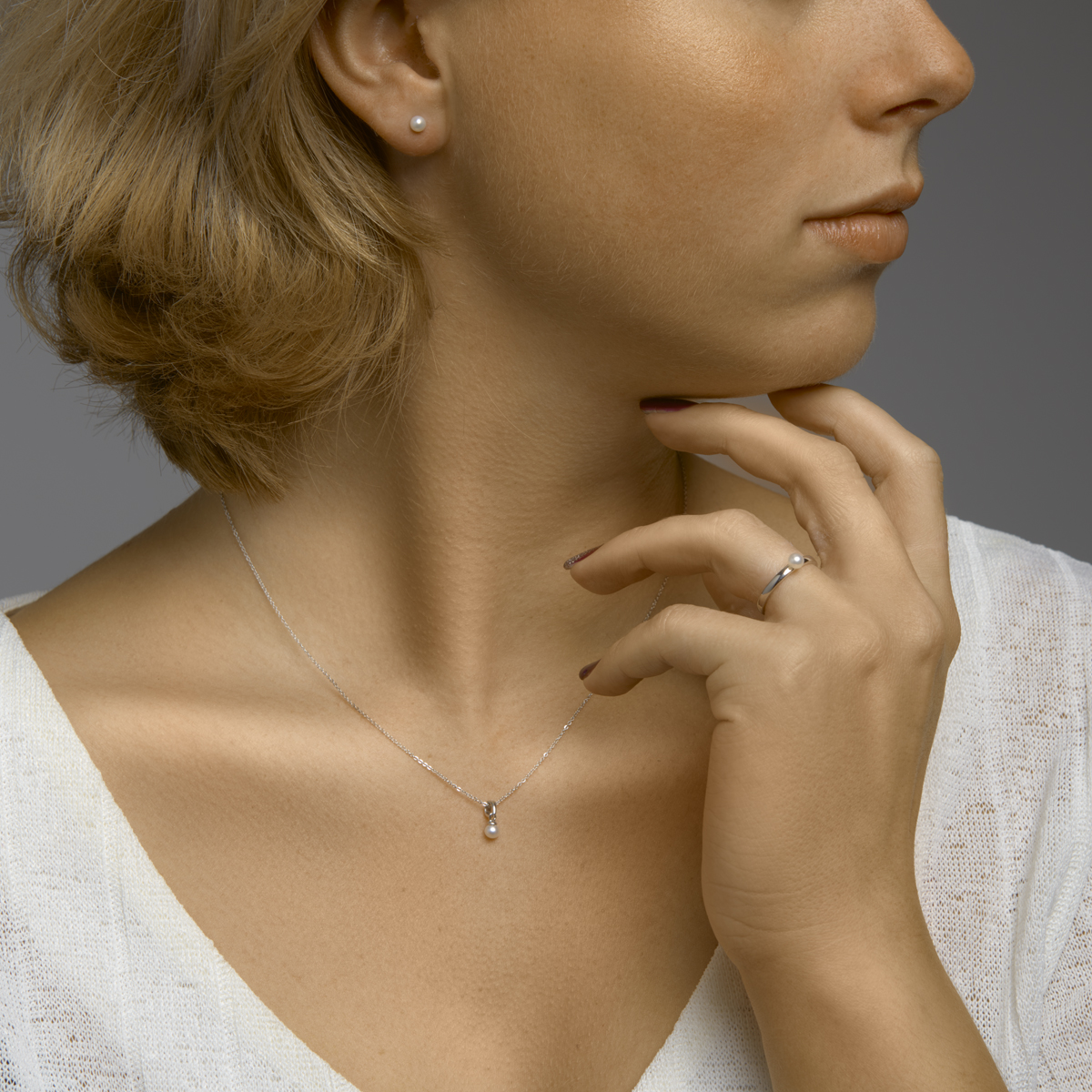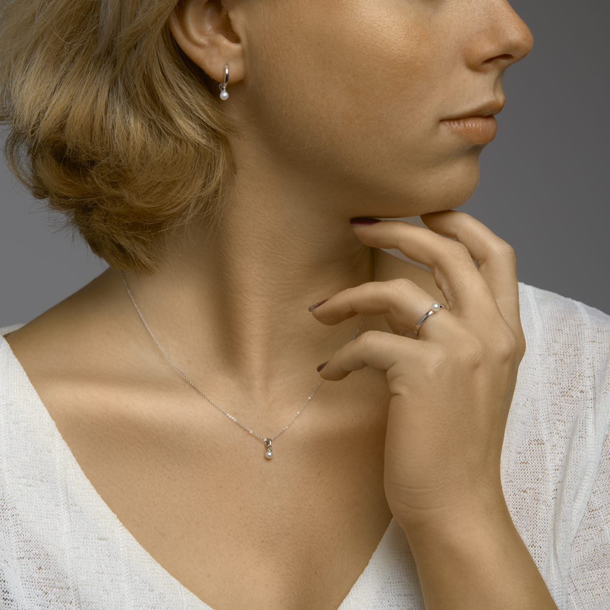 Gerhodineerd 925 zilveren ring uitgevoerd met een zoetwaterparel. De ring heeft een breedte van 4.5mm.