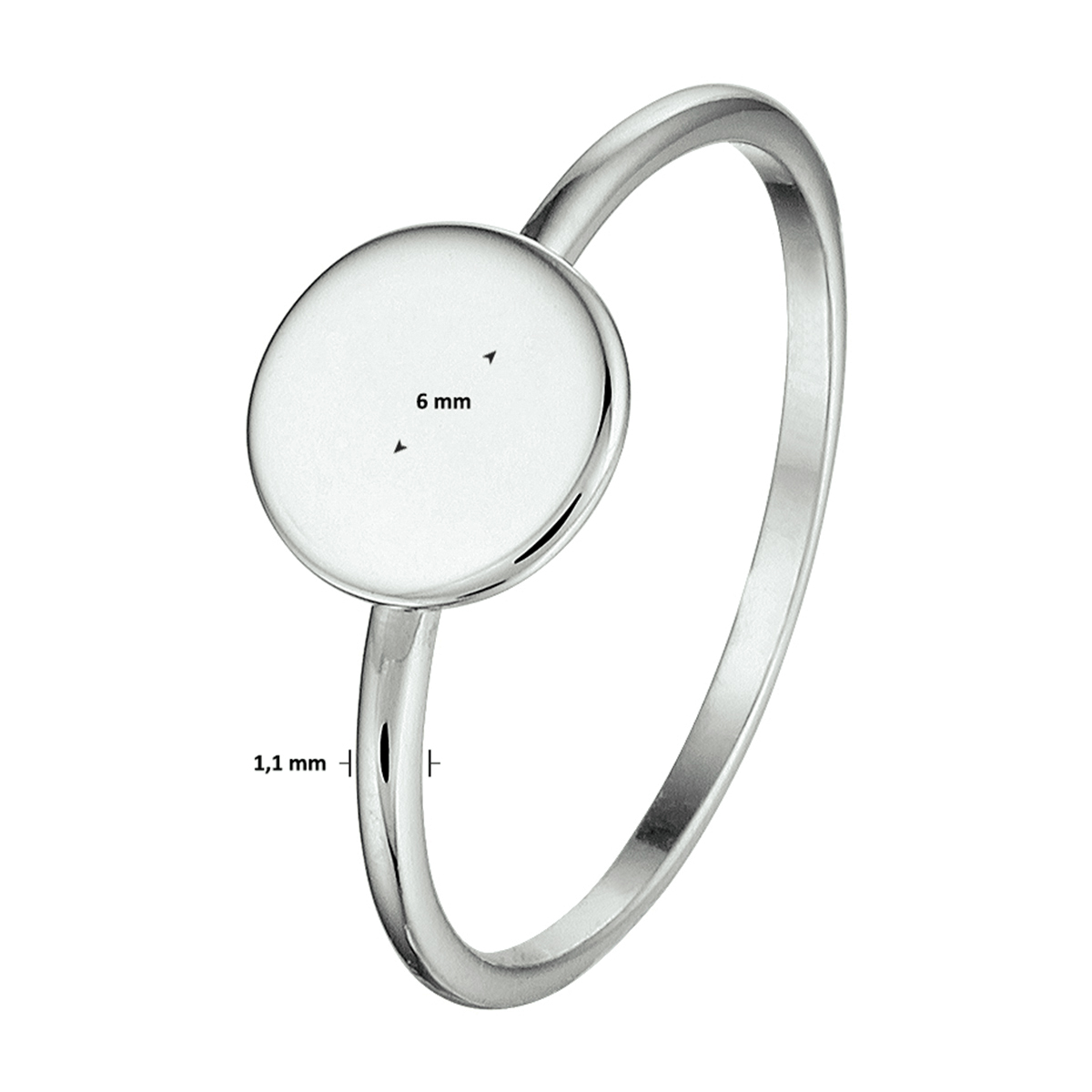 Gerhodineerd zilveren ring uitgevoerd met een poli afgewerkt rondje. De ring heeft een breedte van 7.5mm.