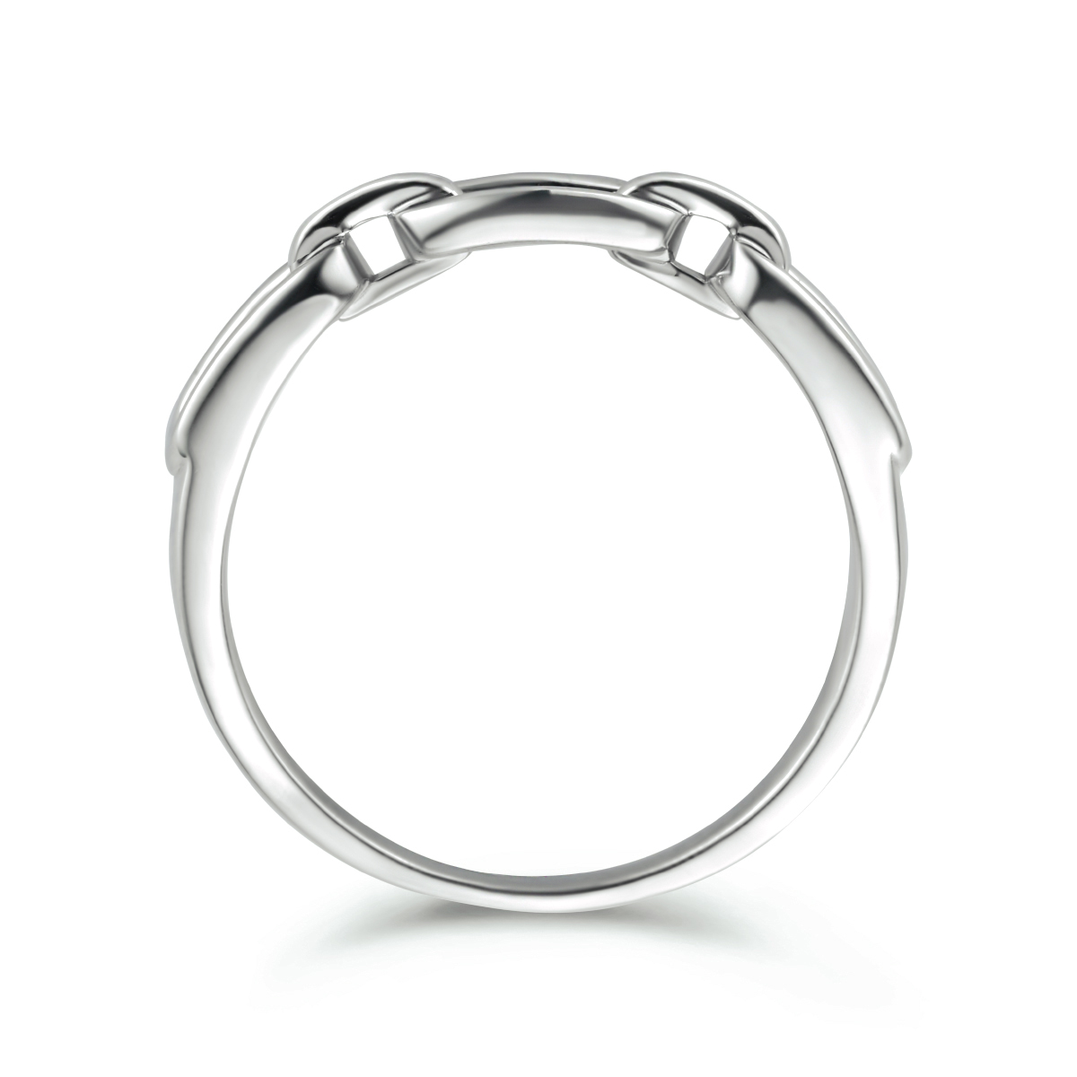 Gerhodineerd 925 zilveren ring met een schakelmotief en een breedte van 4mm.