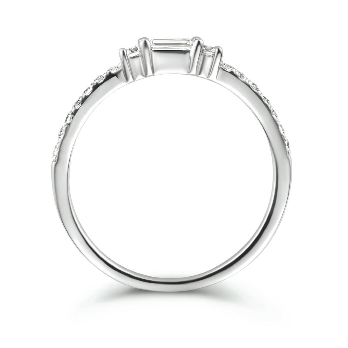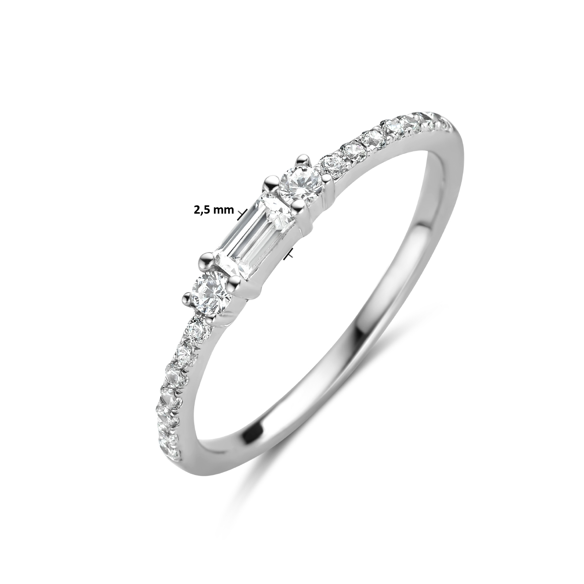 925 Gerhodineerd zilveren ring uitgevoerd met schitterende zirkonia. De ring heeft een breedte van 2.5mm.