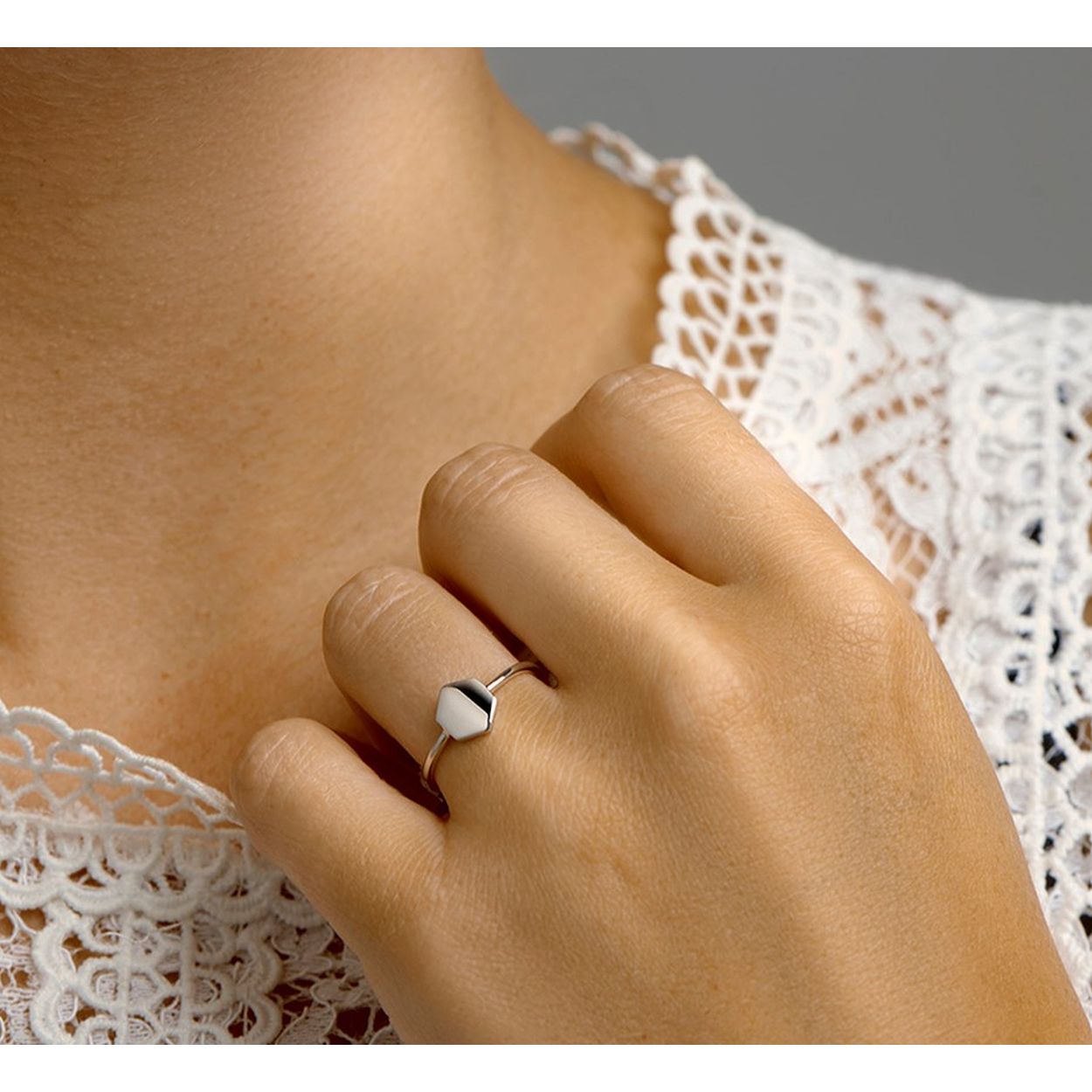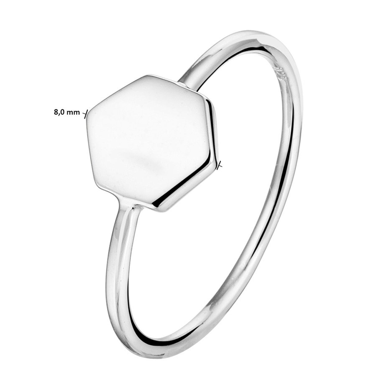 Gerhodineerd 925 zilveren ring uitgevoerd met een zeshoek. De ring heeft een breedte van 8mm.