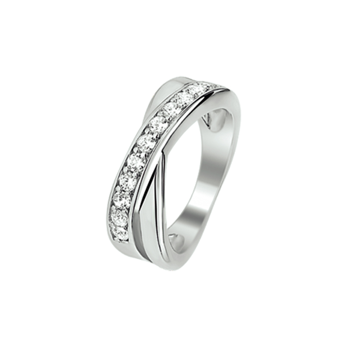 Beschrijving: Gerhodineerd zilveren ring met zirkonia.