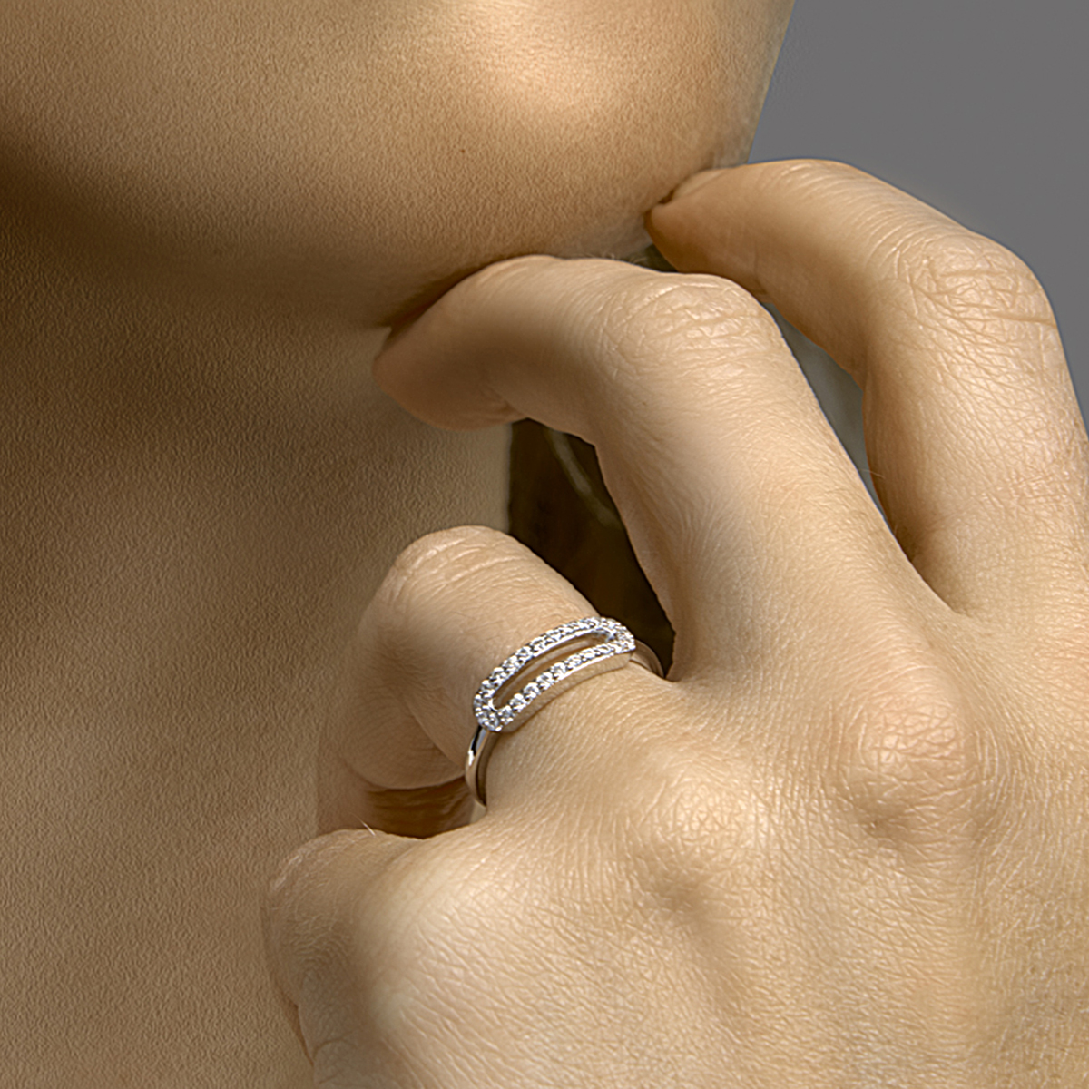 Gerhodineerd 925 zilveren ring uitgevoerd met een schitterende zirkonia rij. De ring heeft een breedte van 5mm.