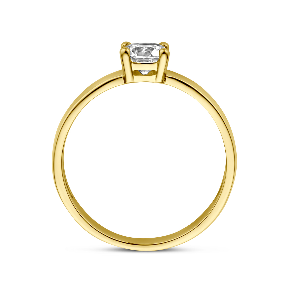 Stijlvolle geelgouden ring met een schitterende zirkonia van 5mm. Tip: Combineer deze ring met bijpassende sieraden uit onze collectie of vanuit je eigen stash en creeer zo elke keer weer een nieuwe look.