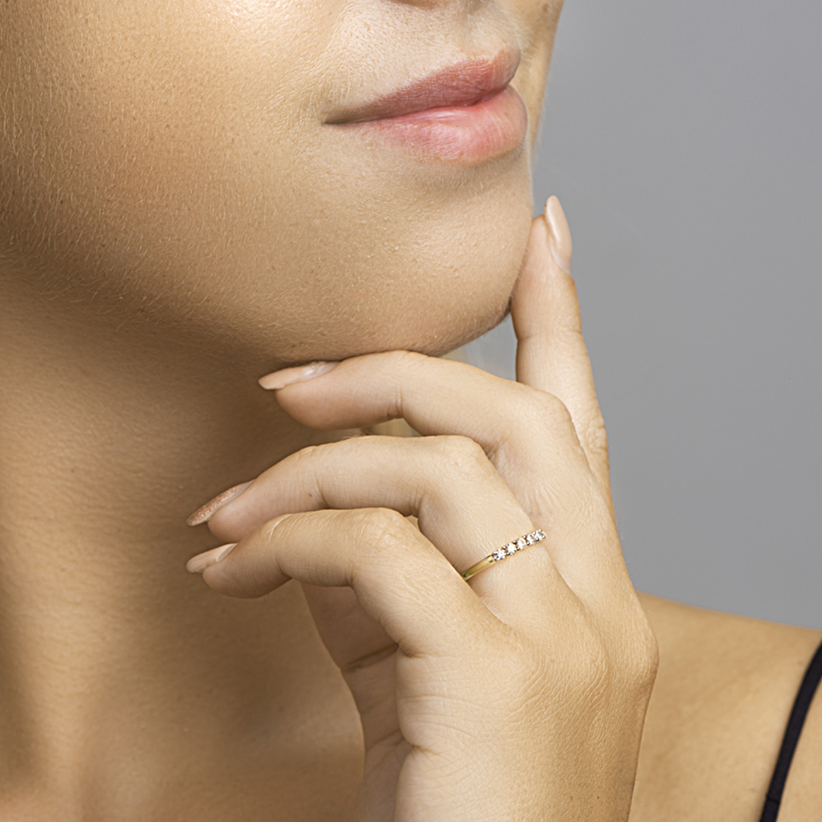 14k Bicolor geel- en witgouden ring met een schitterende zirkonia rij. De ring heeft een breedte van 2mm.
