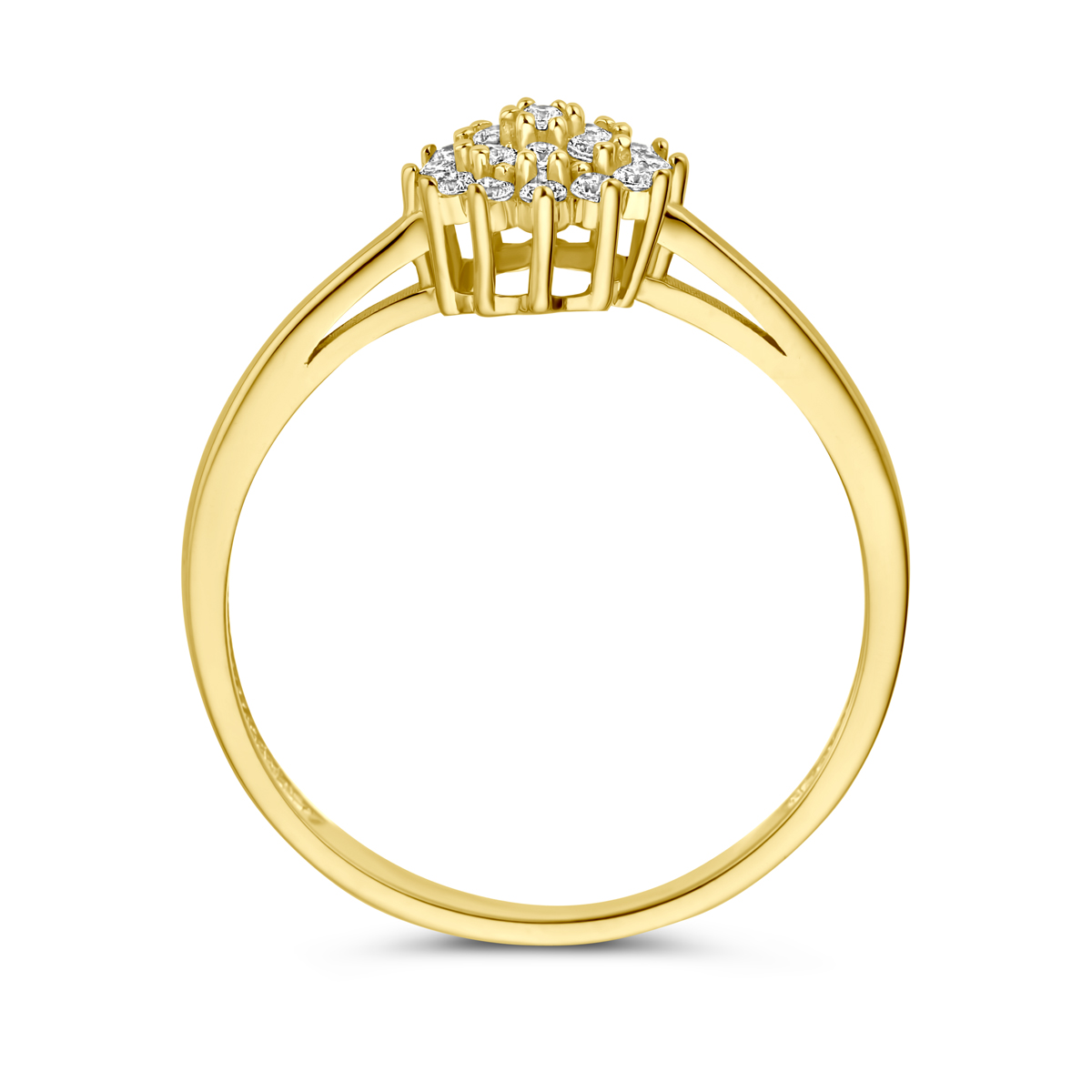 14k Geelgouden ring uitgevoerd met zirkonia. De ring heeft een breedte van 7.5mm.
