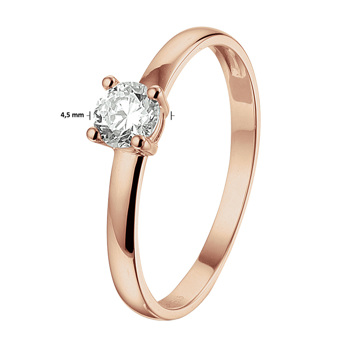 Stijlvolle rosegouden ring met een schitterende zirkonia. Tip: Combineer deze ring met bijpassende sieraden uit onze collectie of vanuit je eigen stash en creeer zo elke keer weer een nieuwe look.