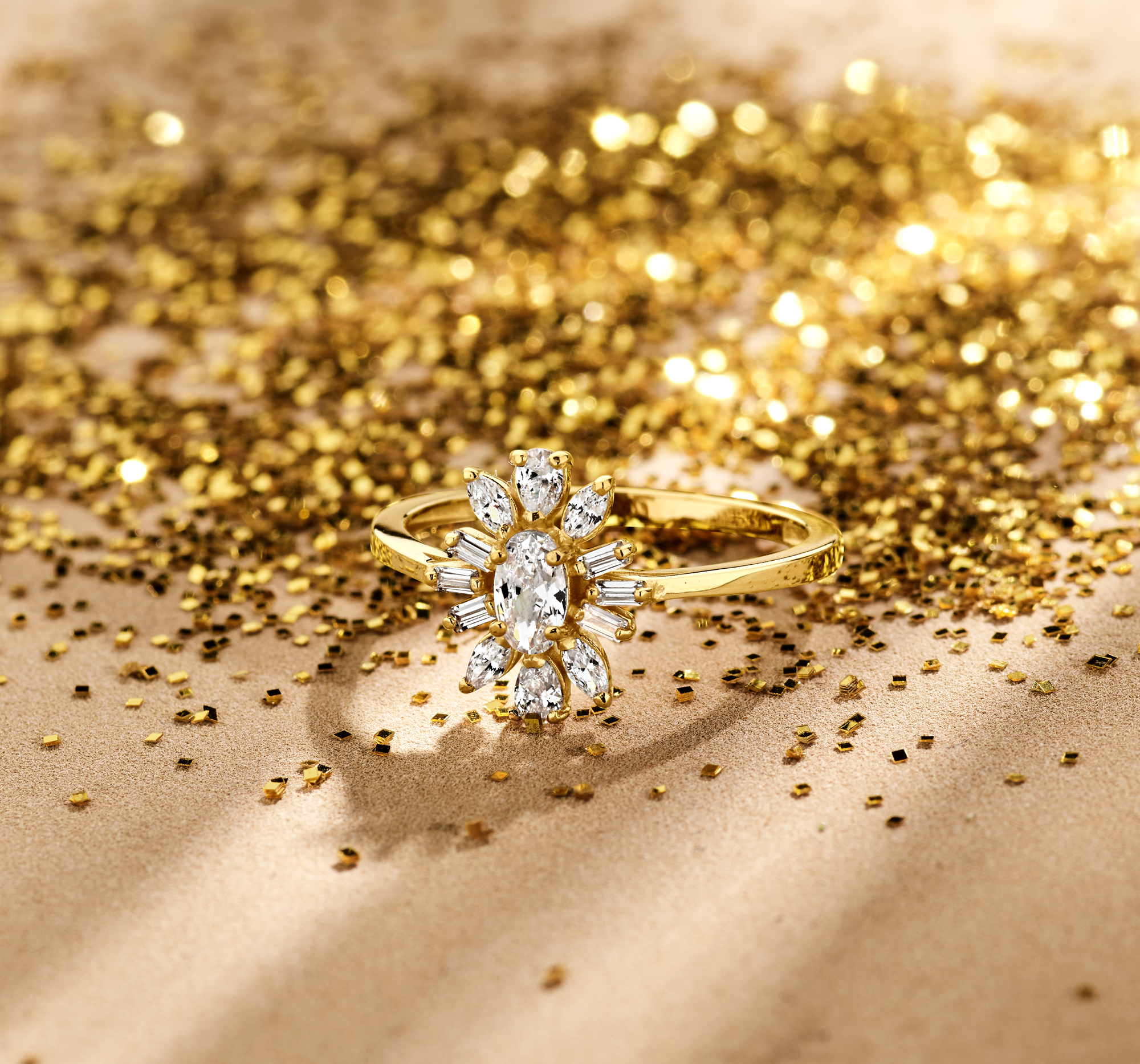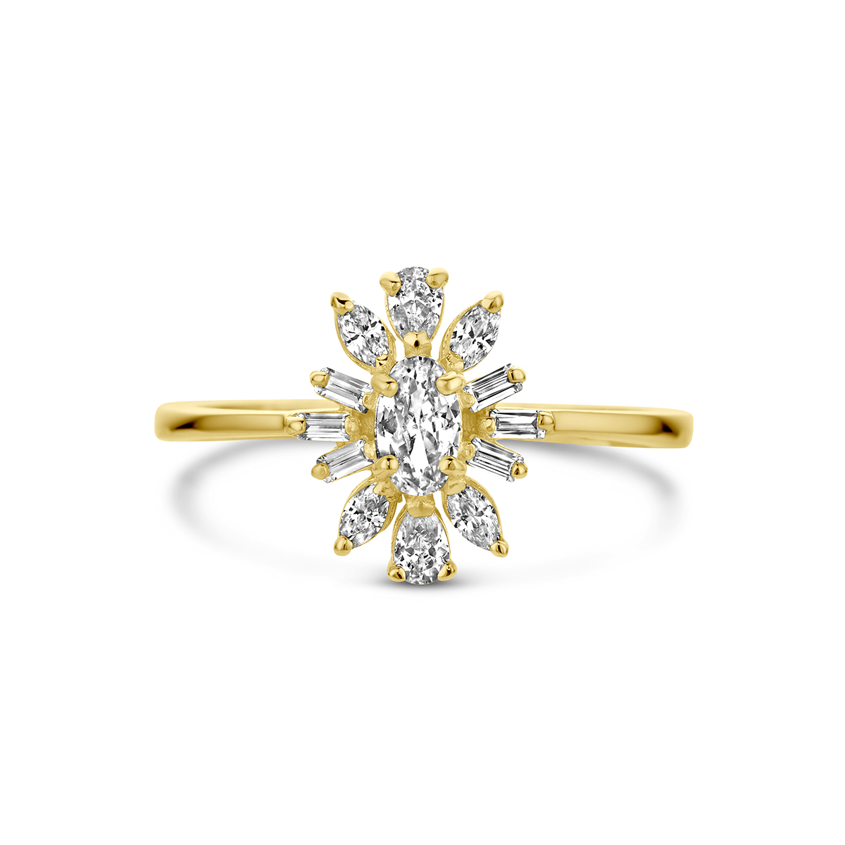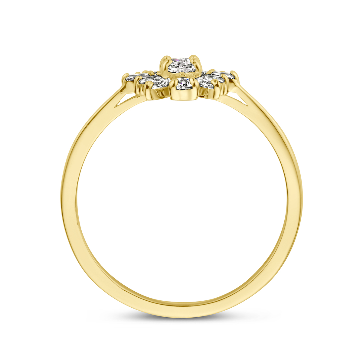 14k Geelgouden ring uitgevoerd met zirkonia. De ring heeft een breedte van 11.5mm.