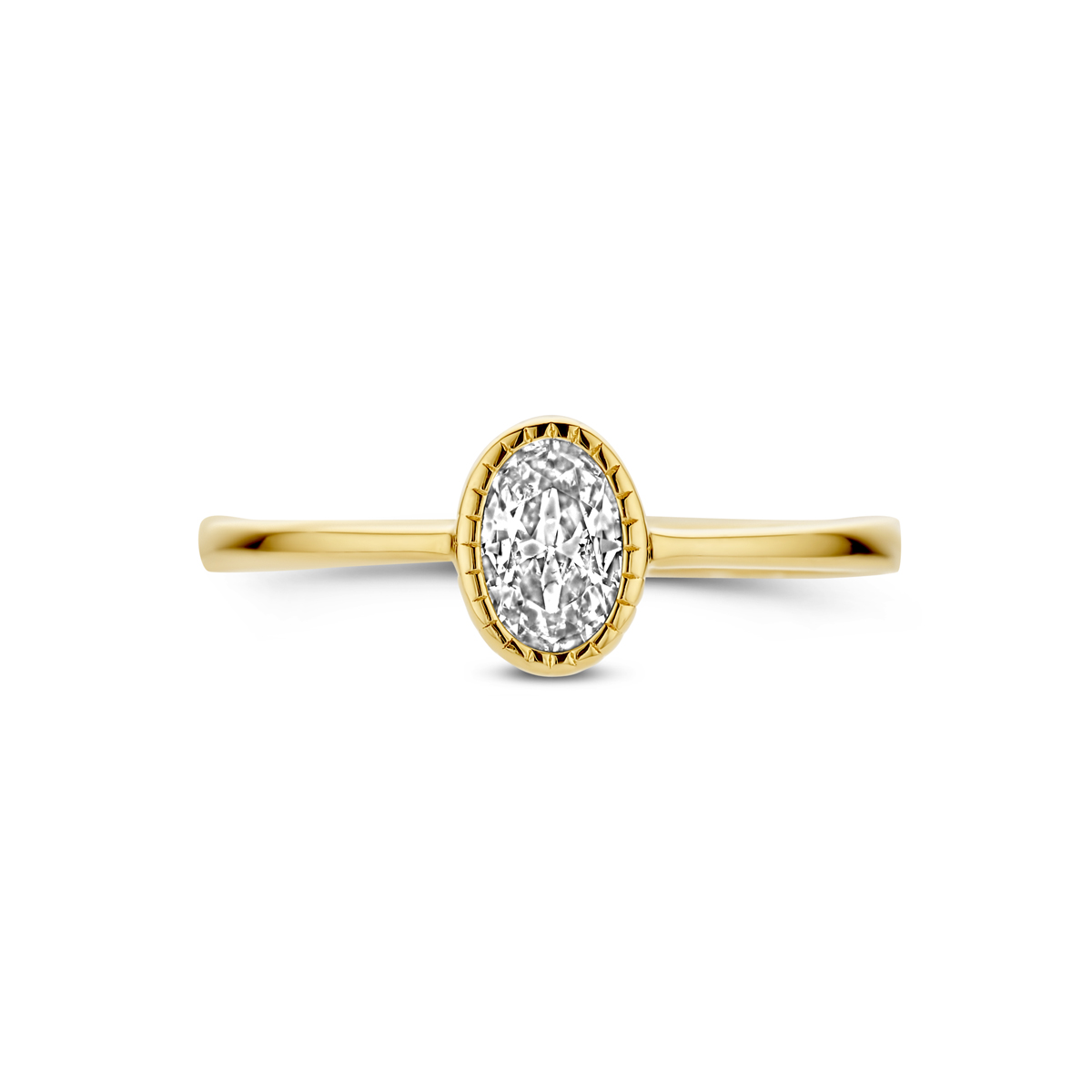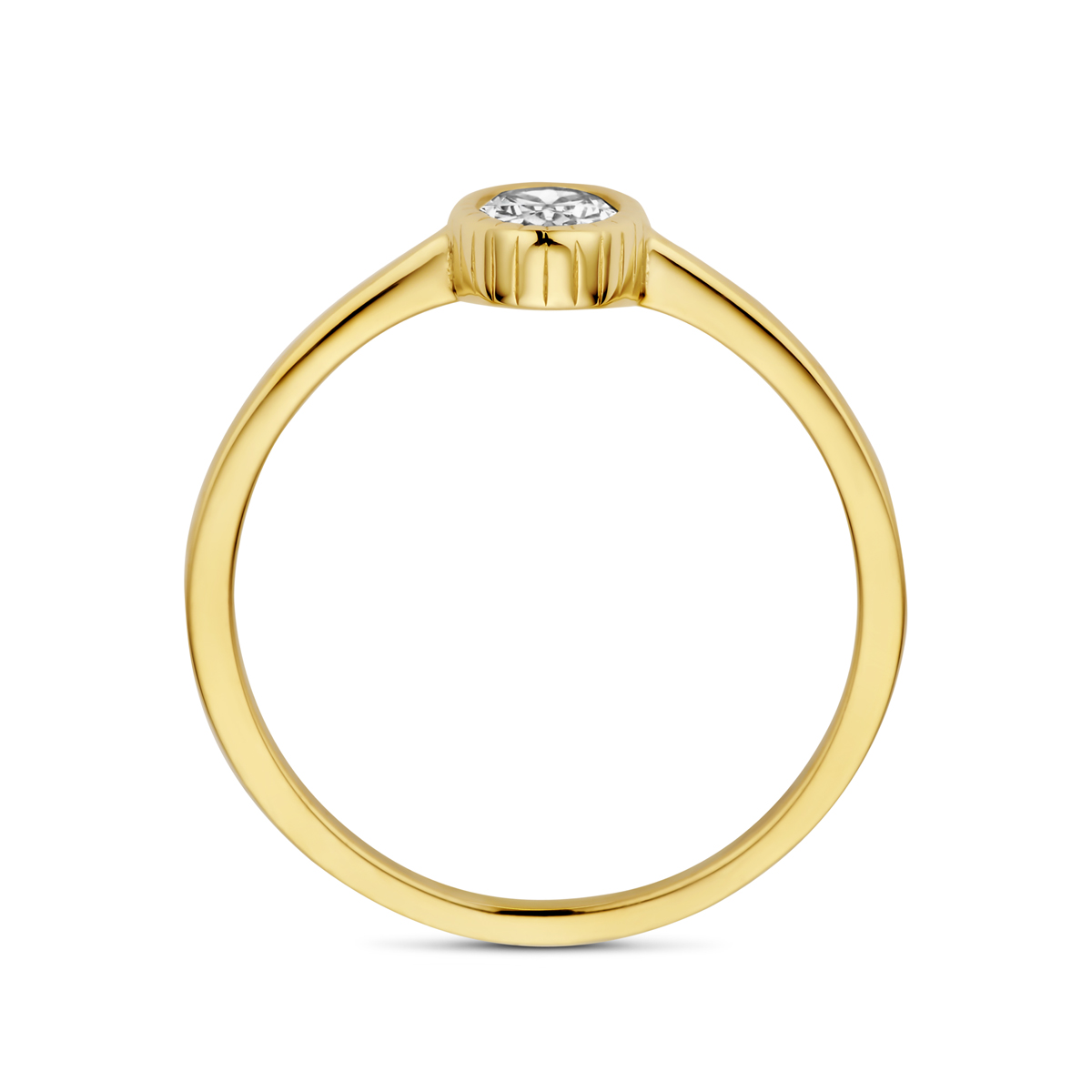 14k Geelgouden ring uitgevoerd met zirkonia. De ring heeft een breedte van 7mm.
