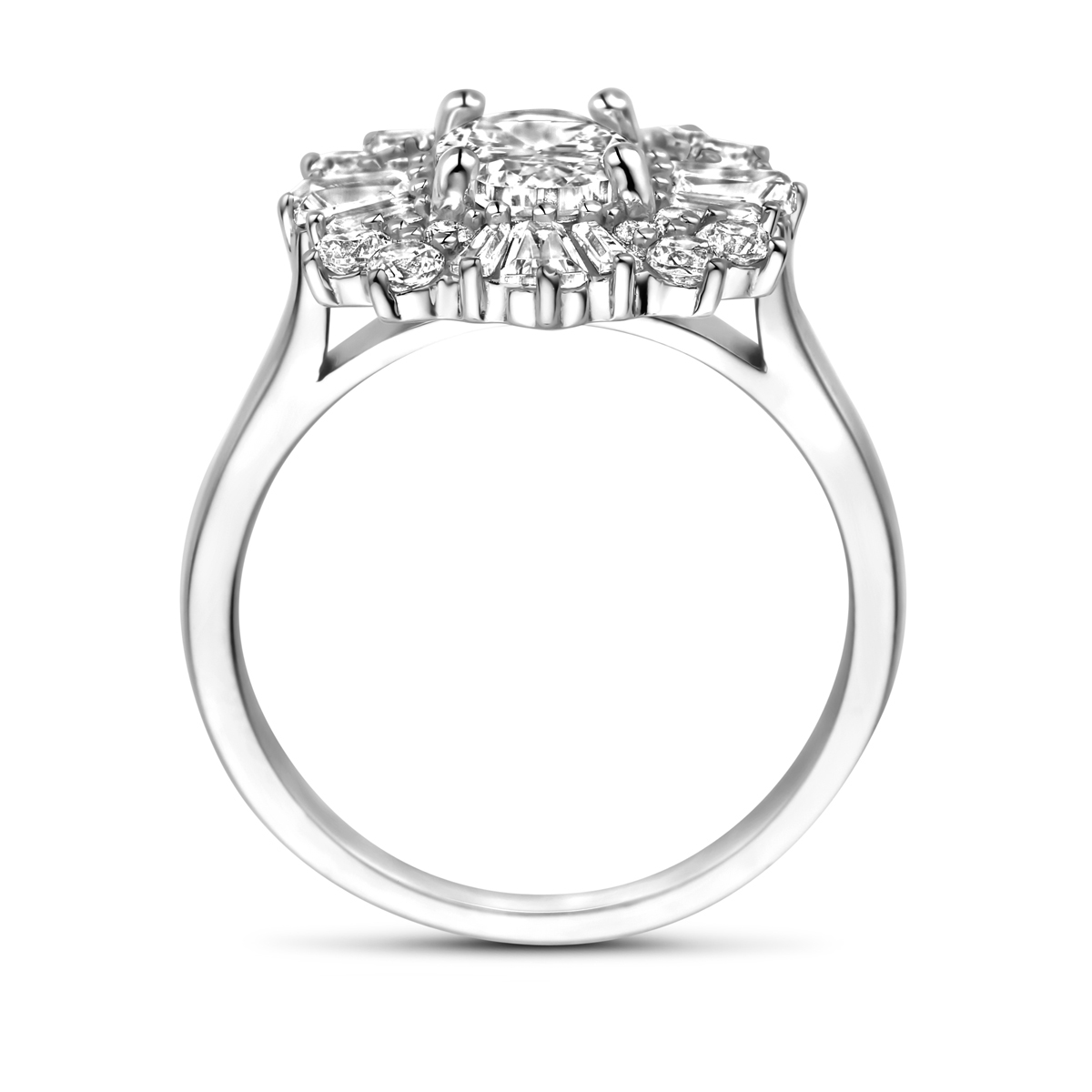 Gerhodineerd 925 zilveren ring uitgevoerd met zirkonia. De ring heeft een breedte van 14.5mm.