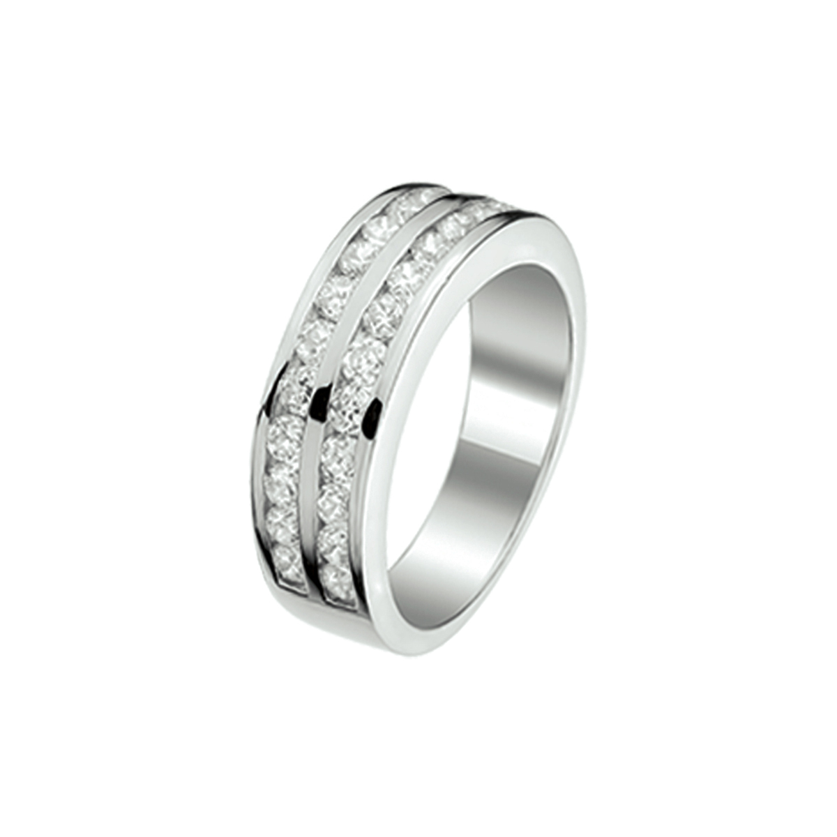Beschrijving: Gerhodineerd zilveren ring met zirkonia.