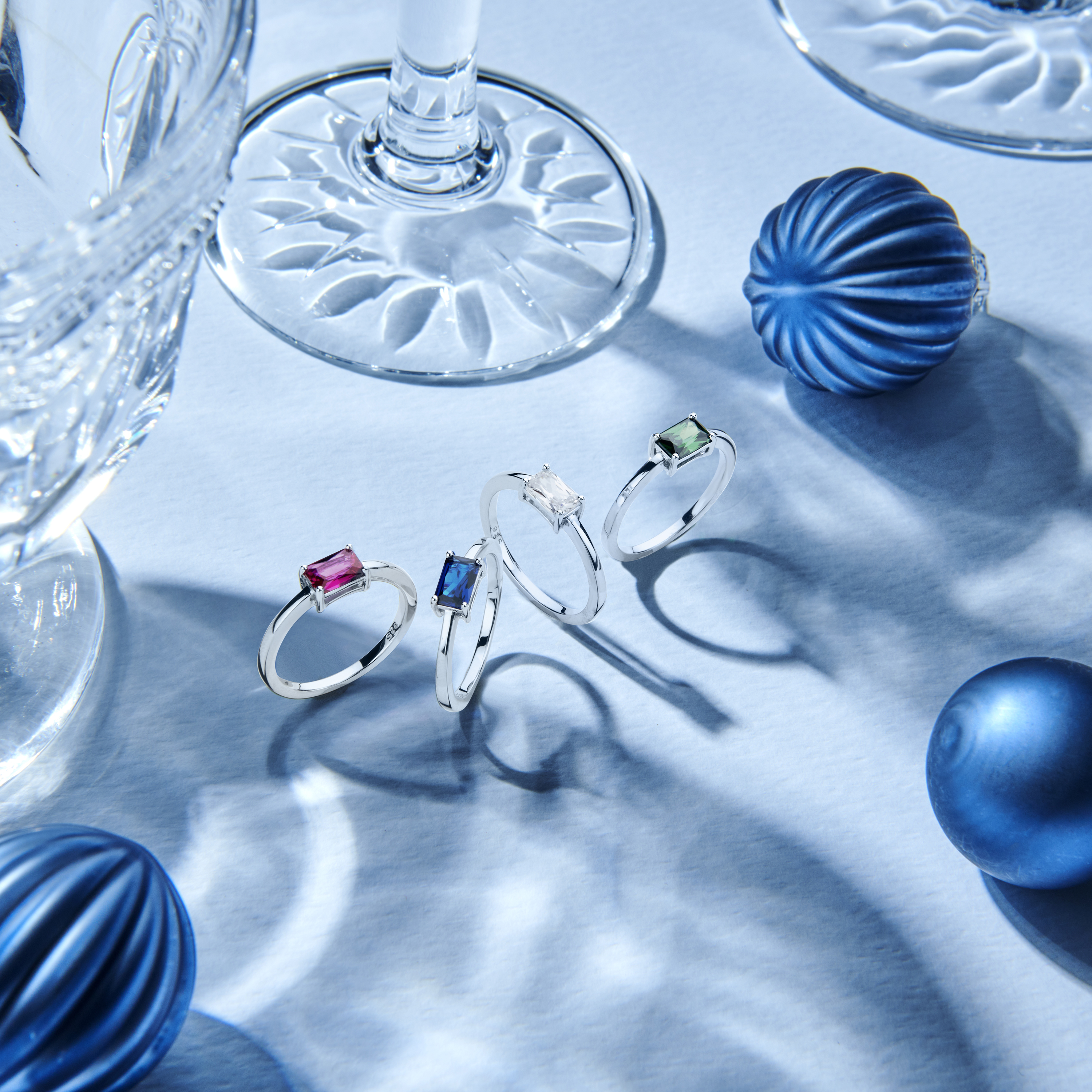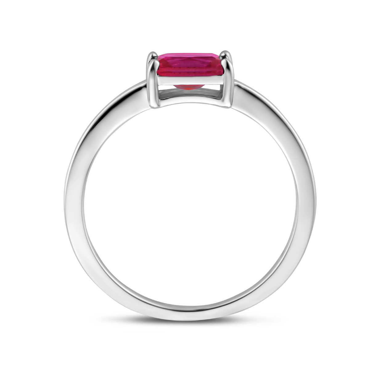 Gerhodineerd 925 zilveren ring uitgevoerd met corundum zirkonia. De ring heeft een breedte van 4.5mm.