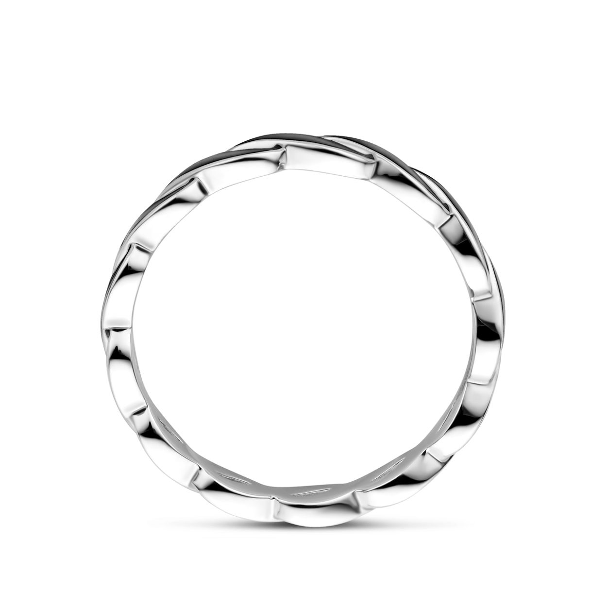 Gerhodineerd 925 zilveren ring uitgevoerd met zwarte emaille. De ring heeft een breedte van 3.5mm.