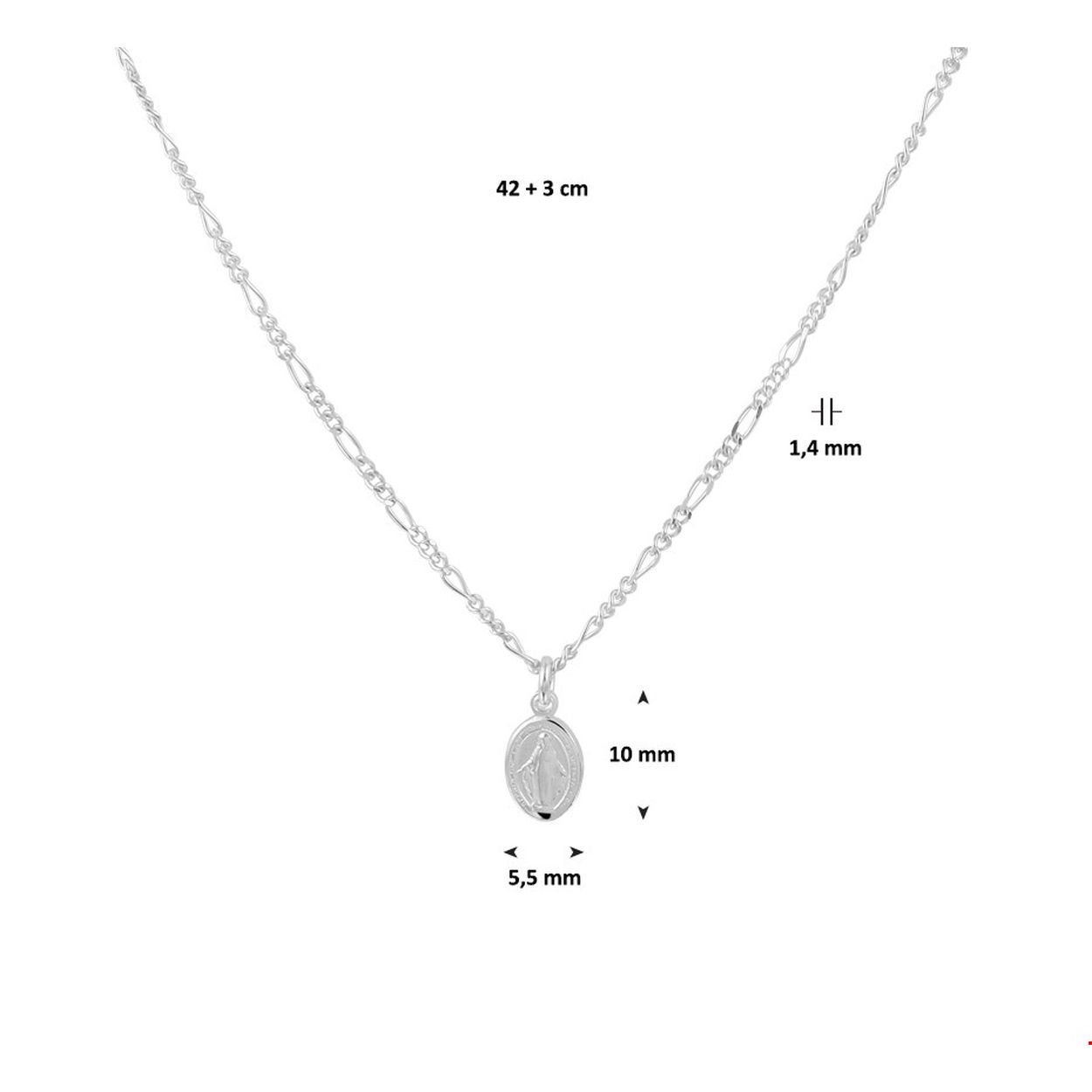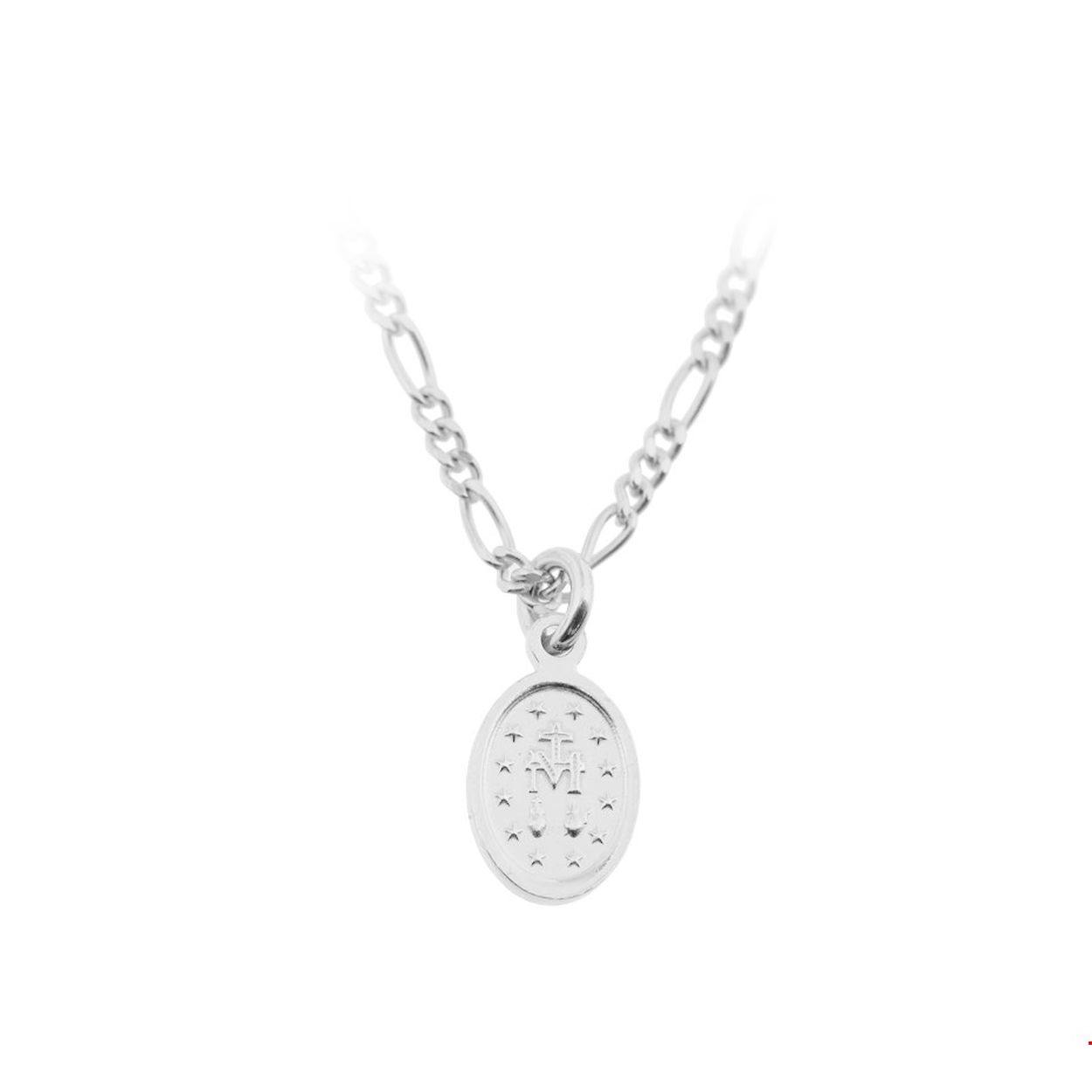 Beschrijving: Vintage gerhodineerd zilveren collier met een dubbelzijdige scapulier hanger met een afmeting van 10x5.5mm. Het collier heeft een draaglengte van 42cm en een extensie van 3cm. Dit collier is uitgevoerd met een stevige karabijn sluiting en geeft je look direct een chique en stijlvolle uitstraling.