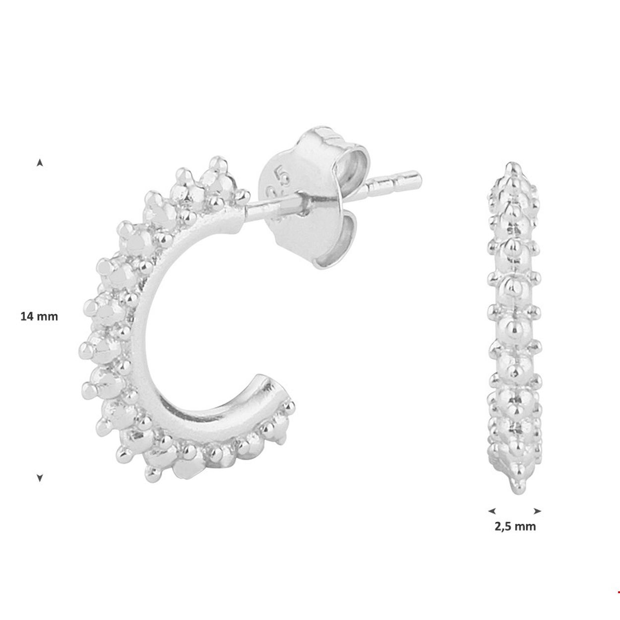 Gerhodineerd zilveren stekeroorringen met kleine bolletjes. De stekeroorringen hebben een afmeting van 14x2.5mm. Omdat ze een minimalistische uitstraling hebben zijn ze makkelijk te combineren met andere zilveren bolletjes sieraden. Info: Gerhodineerd zilver is door de rhodiumlaag beter bestand tegen verkleuren en krassen.