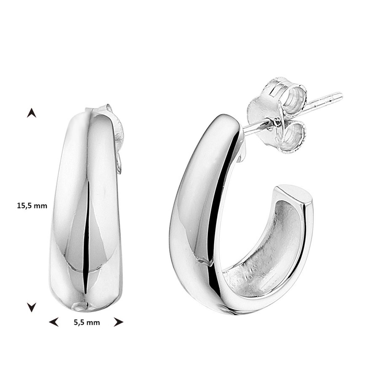Gerhodineerd 925 zilveren stekeroorringen. De oorringen hebben een afmeting van 15.5x5.5mm.