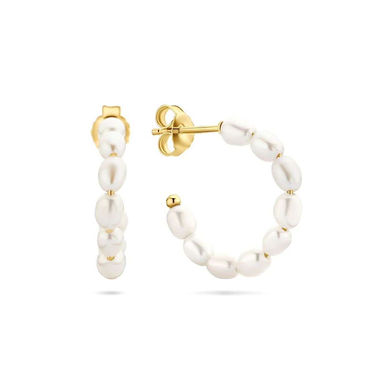 Geelgoud op 925 zilveren stekeroorringen uitgevoerd met zoetwaterparels. De stekeroorringen hebben een afmeting van 22.5x4mm.