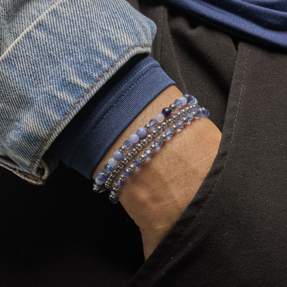 Armband van het merk Rebel & Rose. De armband heeft een hoogwaardige elastische stretch koord, met 4mm van Glas Rock, Blauwe Agaat, Sodaliet Blauw, Hematiet.