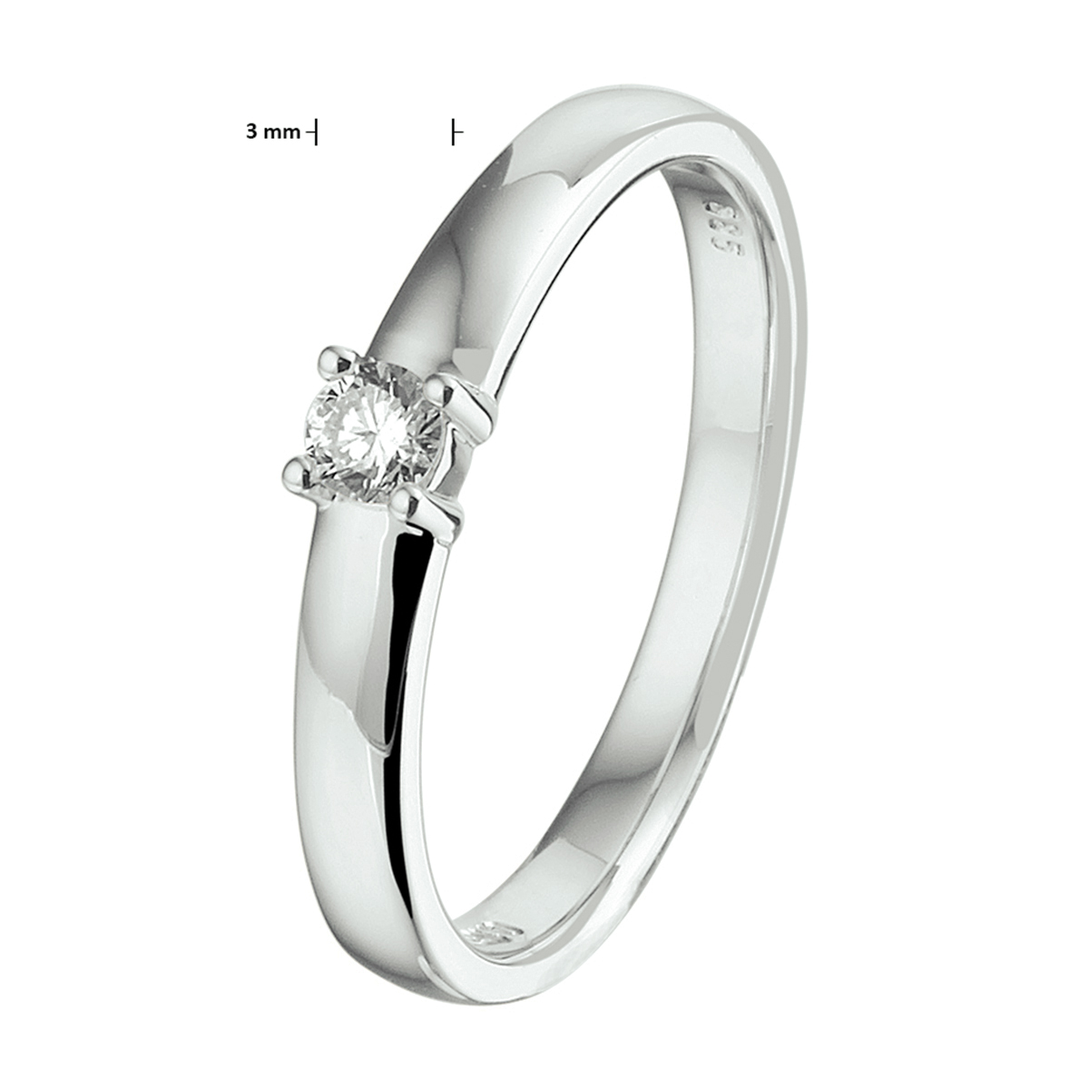 14k Witgouden ring uitgevoerd met een schitterende diamant. De ring heeft een breedte van 3mm.