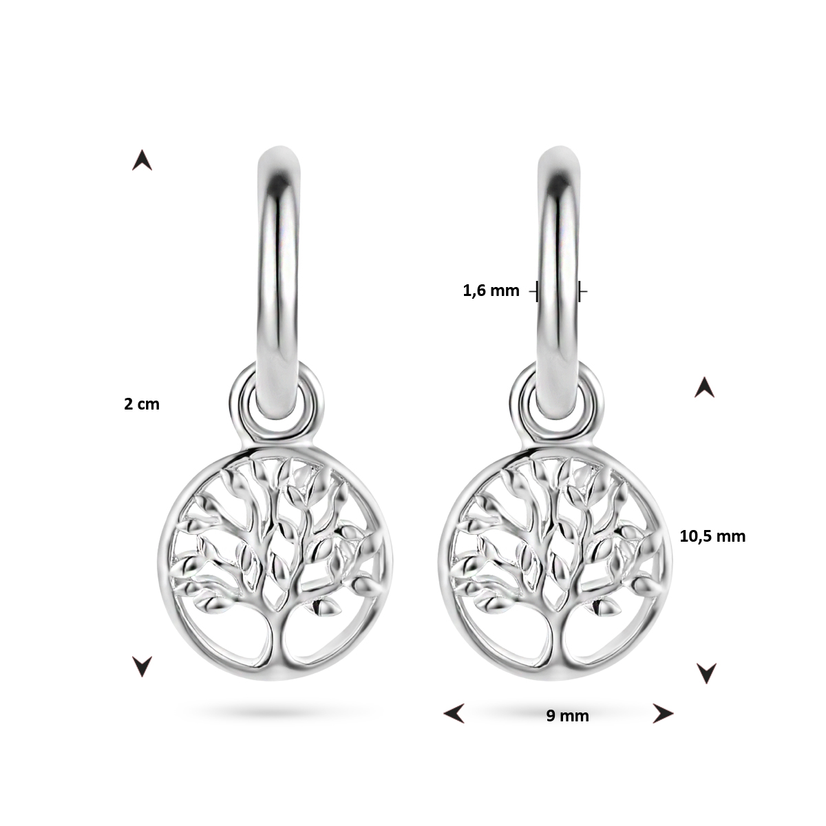 Gerhodineerd 925 zilveren klapoorringen met een levensboom. De levensboom hanger heeft een diameter van 9mm.